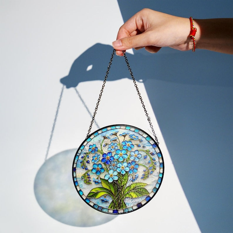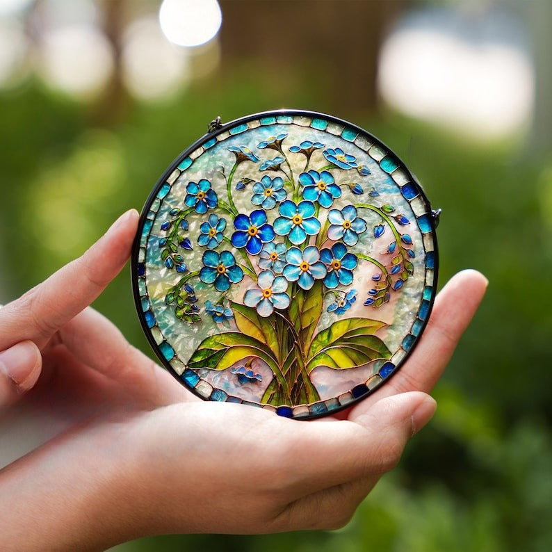 Personalized Forget Me Not Botanical Stained Glass Suncatcher, Memorial Sympathy Window Hanging Decor, Mothers Day Present For Mom, Grandma