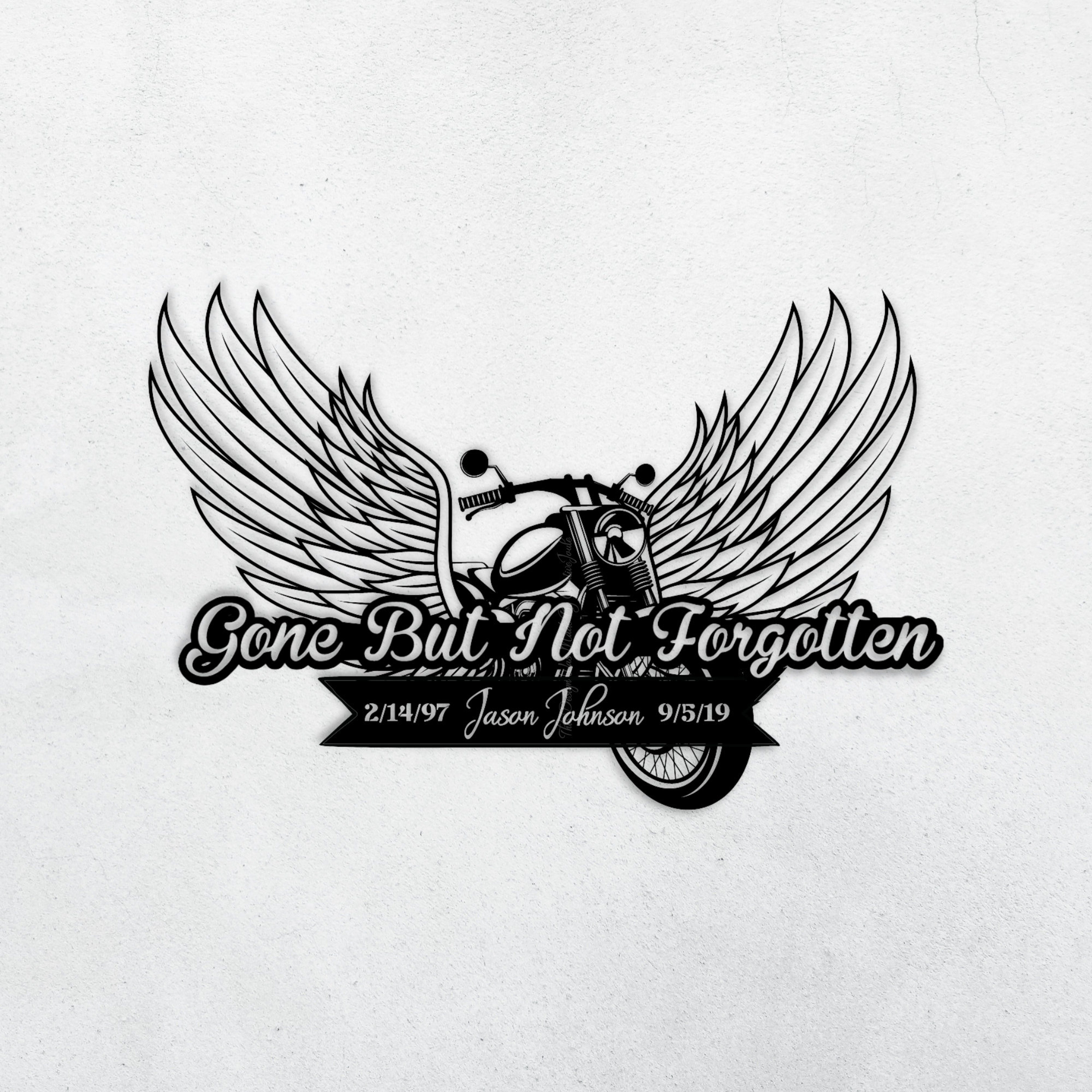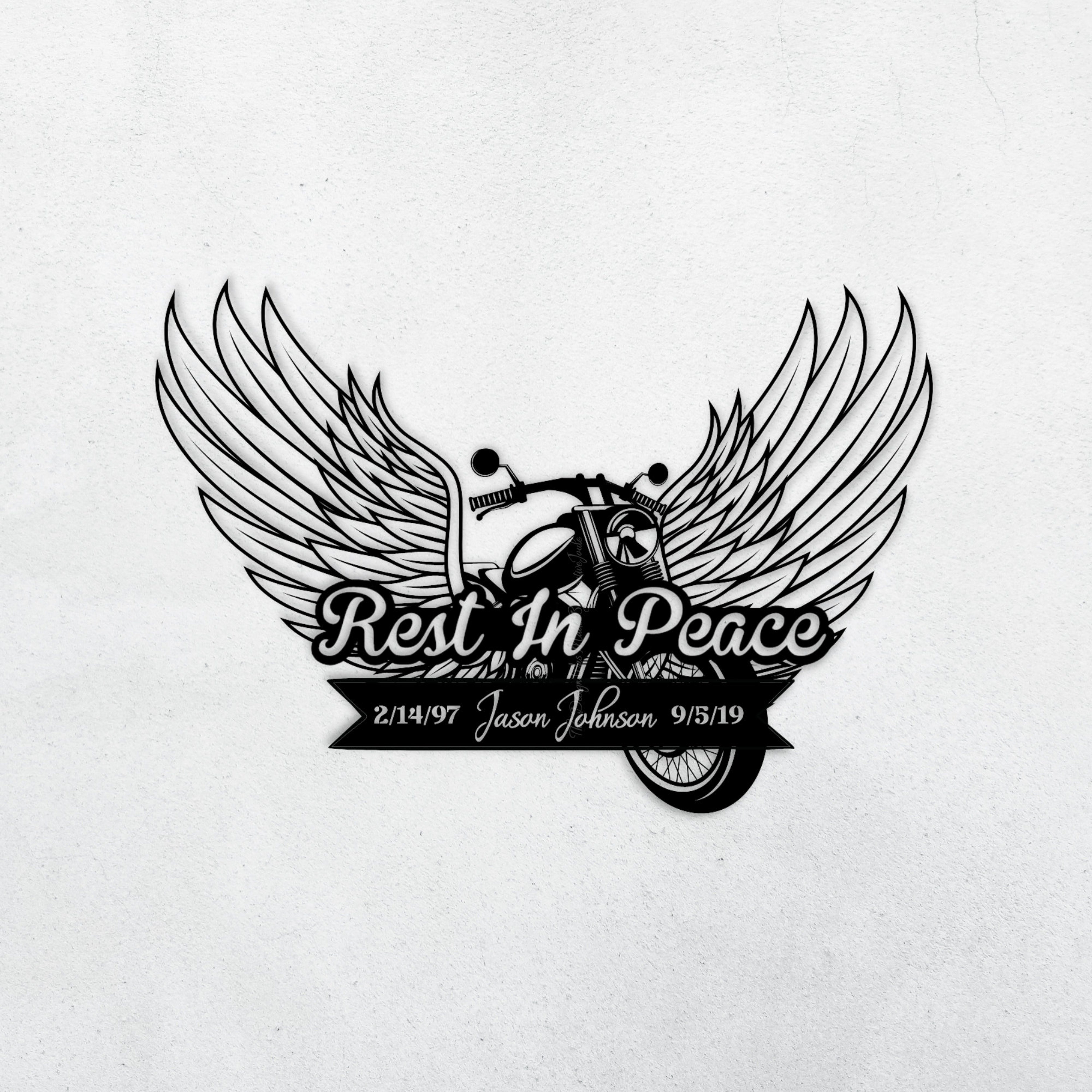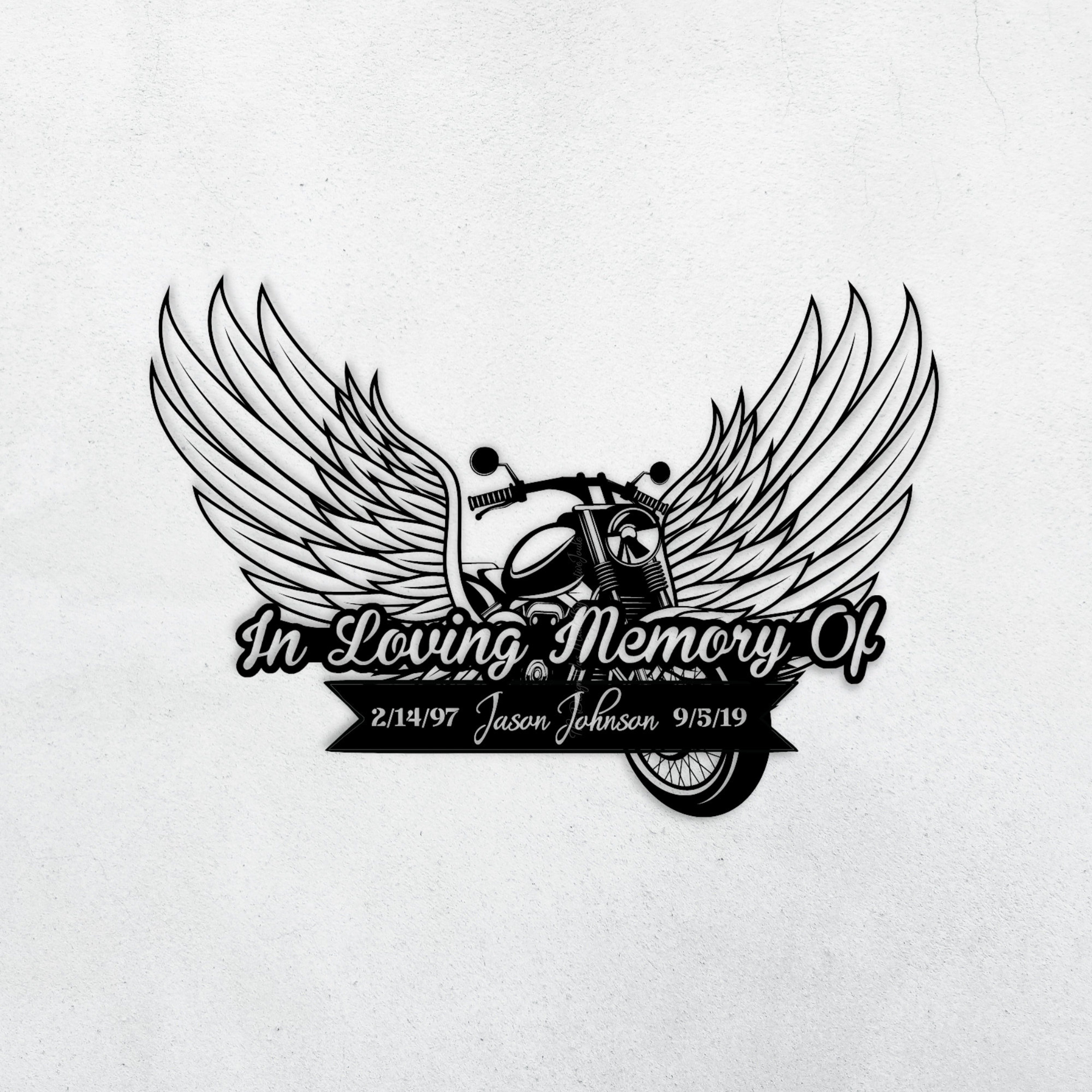 Personalized Metal Sign Motorcycle With Angel Wings, In Loving Memory, Rest In Peace Memorial Loss Of Loved One Metal Sign Decoration