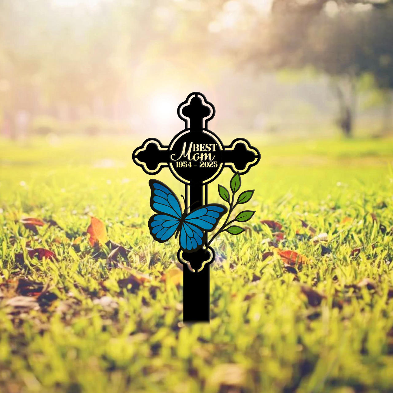 Personalized Mom Memorial Cross Stake, Metal Grave Marker, In Loving Memory Garden Sign, Loss of Mother Plaque with Stake