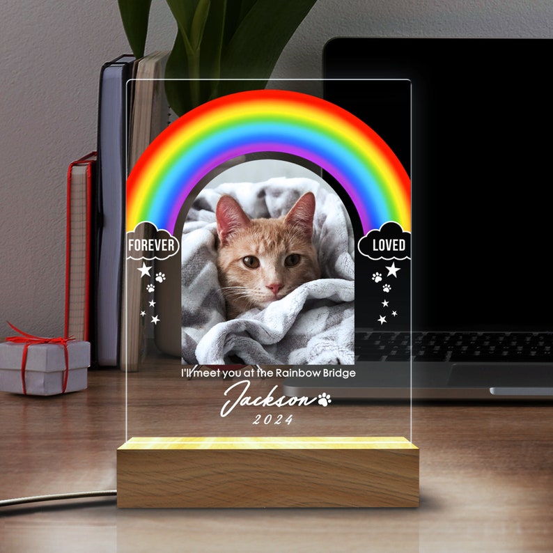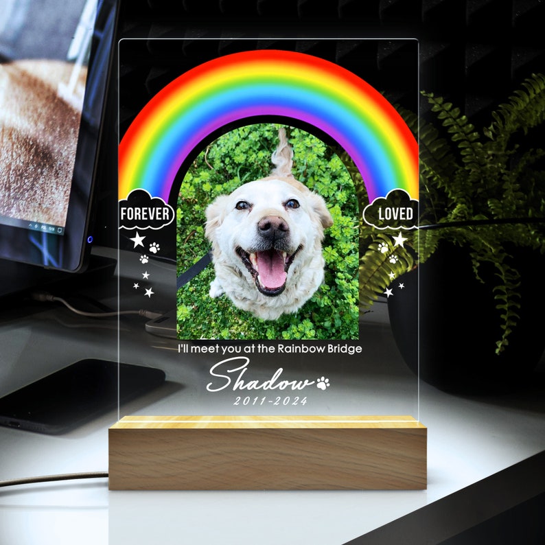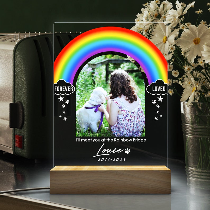 Rainbow Light Up Pet Memorial Plaque | Pet Memorial Night Light | Personalized Gifts for Pet Loss | Custom Pet Photo | Custom Pet Memorial Gifts