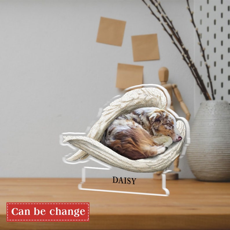 Sleeping Pet Within Angel Wings Personalized Dog Photo Acrylic Plaque, Dog Acrylic Keepsake Gift, Cute dog Sleeping Angel Acrylic Plaque