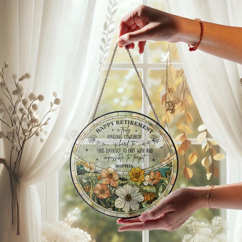 Sized at 6.4 inch and 7.85 inch , this captivating glass suncatcher effervesces with brilliance in the sunlight, adorned with a vibrant hummingbird and flowers in a kaleidoscope of hues. Every piece is meticulously hand-soldered and reinforced with zinc strips along the outer edge, ensuring its lasting strength. Thoughtfully, two secure hanging hooks are seamlessly incorporated at the top for effortless display.