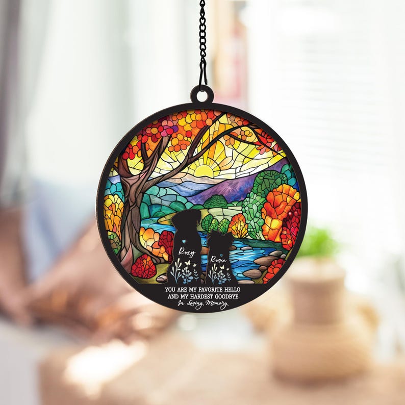 Custom Dog Memorial Suncatcher with Dog Breed, Personalized Couple Dog Suncatcher With Name, Dog Memorial Gift, Dog Loss Gift