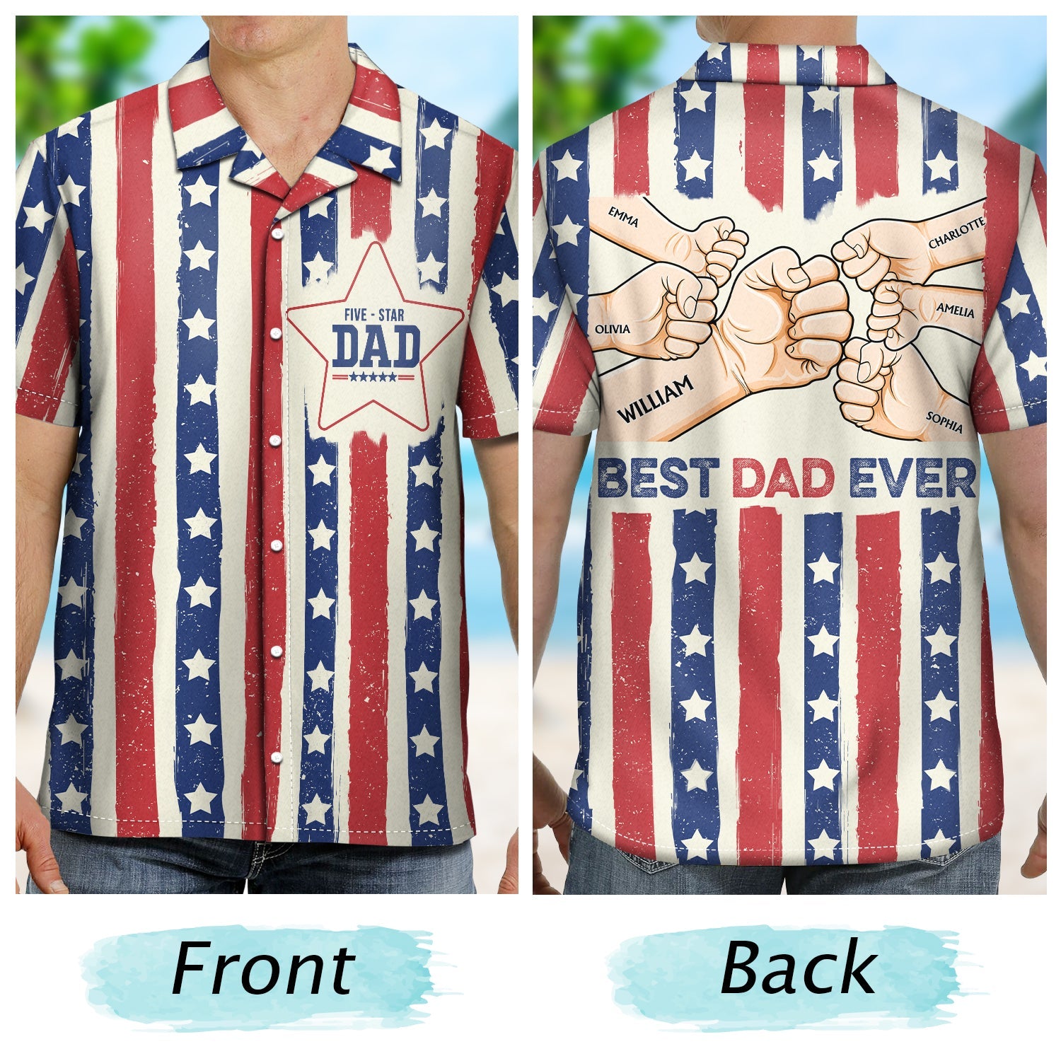 Five Star Best Dad Ever - Personalized Hawaiian Shirt - Patriotic Gift For Father Grandpa, Summer Gift