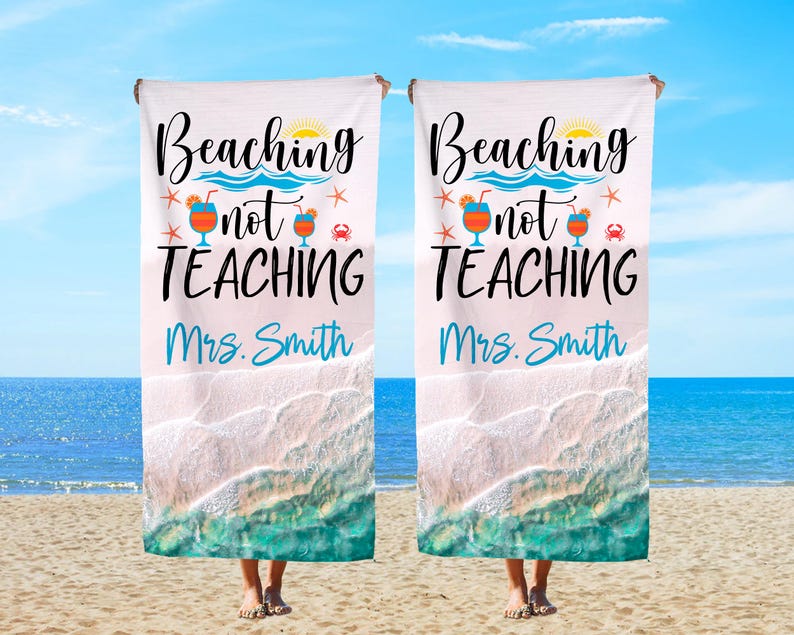 Personalized Teachers Gift, Beaching Not Teaching Towel, Teacher Beach Towel, Teacher Appreciation Gift, Retired Gift, End of the Year Gift