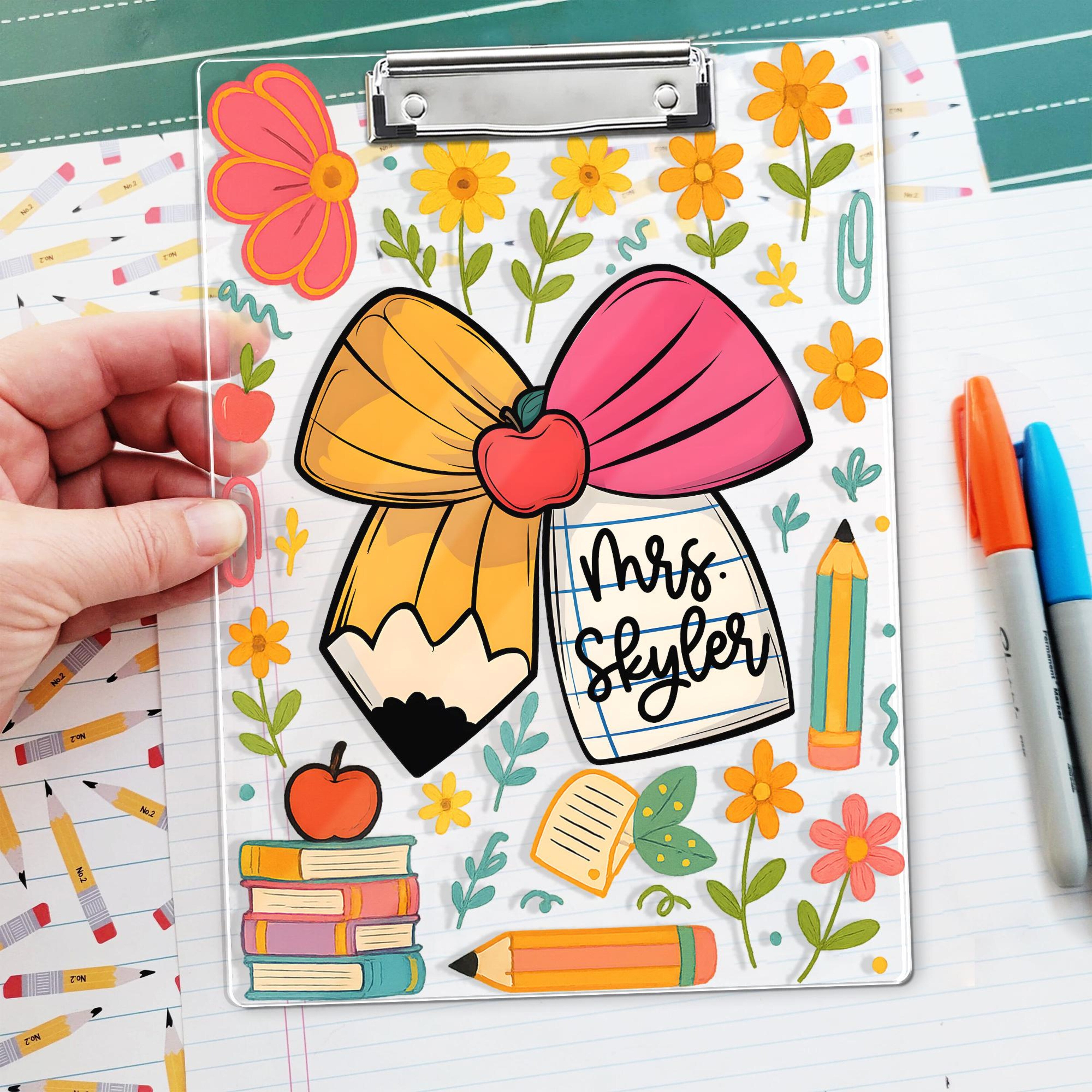 Personalized Teacher Appreciation Gift, Custom Pencil Floral Teacher Clipboard, End Of Year Gift, Back To School Teacher School Supplies