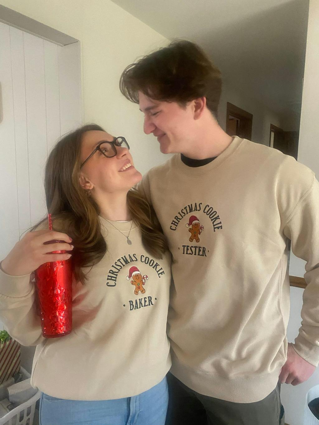 This sweatshirt is super cute, exceeded my expectations! Big hit at Christmas! I got both in sand and my boyfriend really loves them.