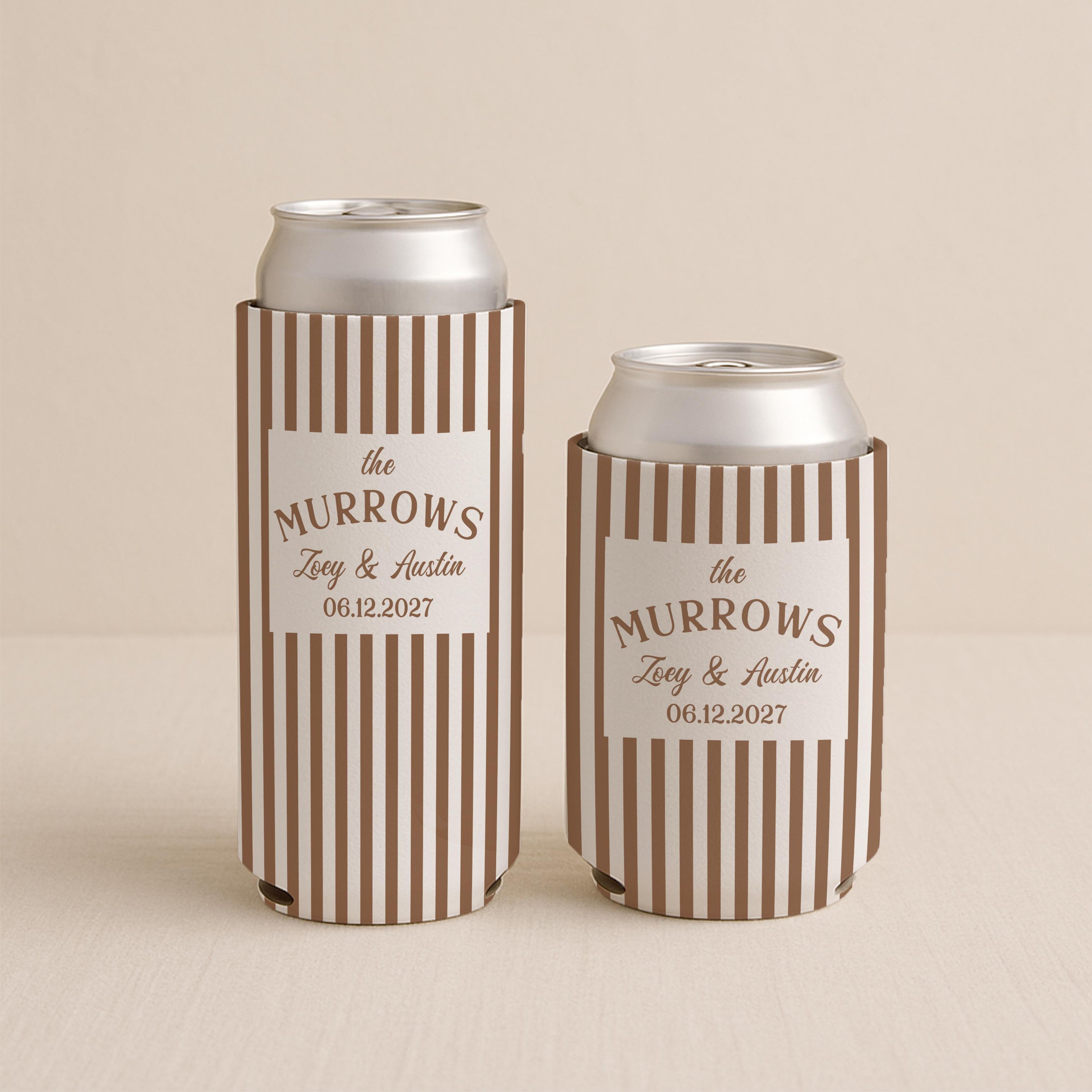 Celebrate your beach weekend with this personalized coastal bachelorette can cooler — perfect for bridal parties, beach bachelorettes, and wedding party favors. These custom drink holders feature a chic striped design and can be personalized with the bride’s name, date, and location.