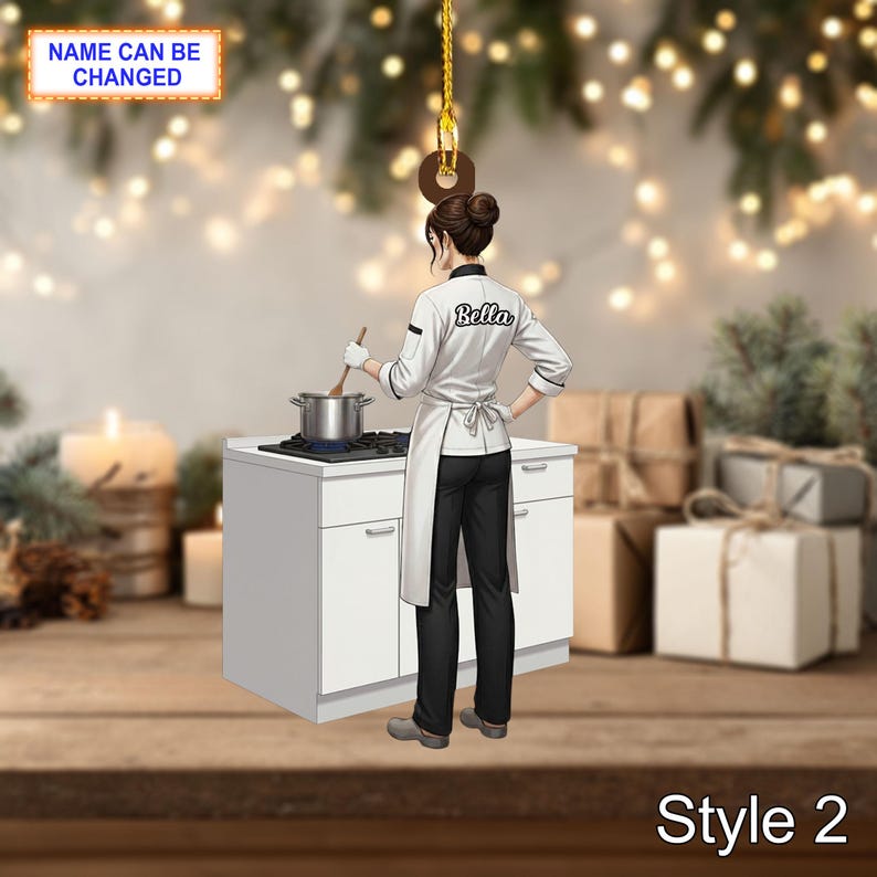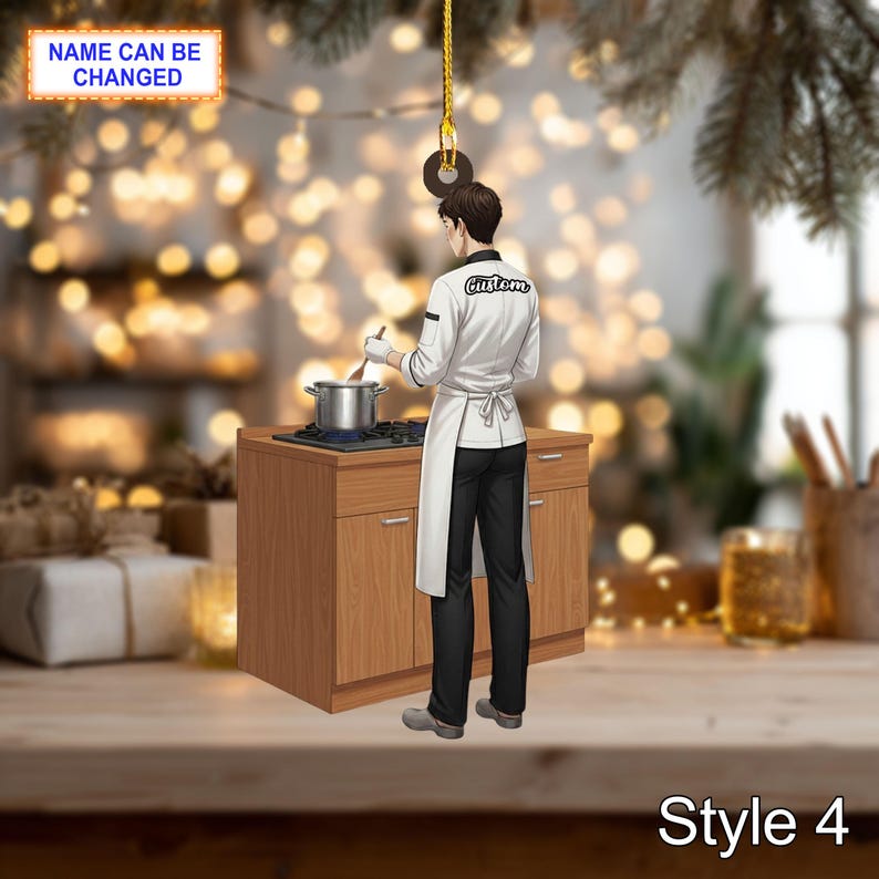 Custom Name Chef Christmas Ornament, Holiday Tree Hanging Decor, 2D Flat Acrylic Wooden Ornament, Unique Chef Gift, Festive Kitchen Decor