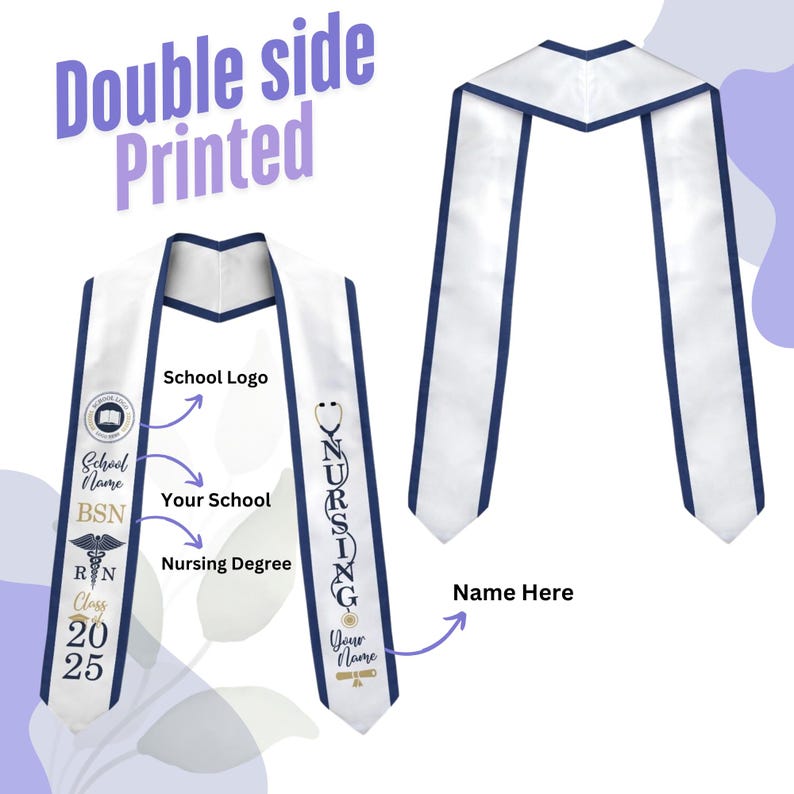 🎓 This personalized graduation stole is a great way to show your school pride at graduation. Enter your name and select your pictures, they will be printed beautifully on the stole. Make the occasion even more memorable.