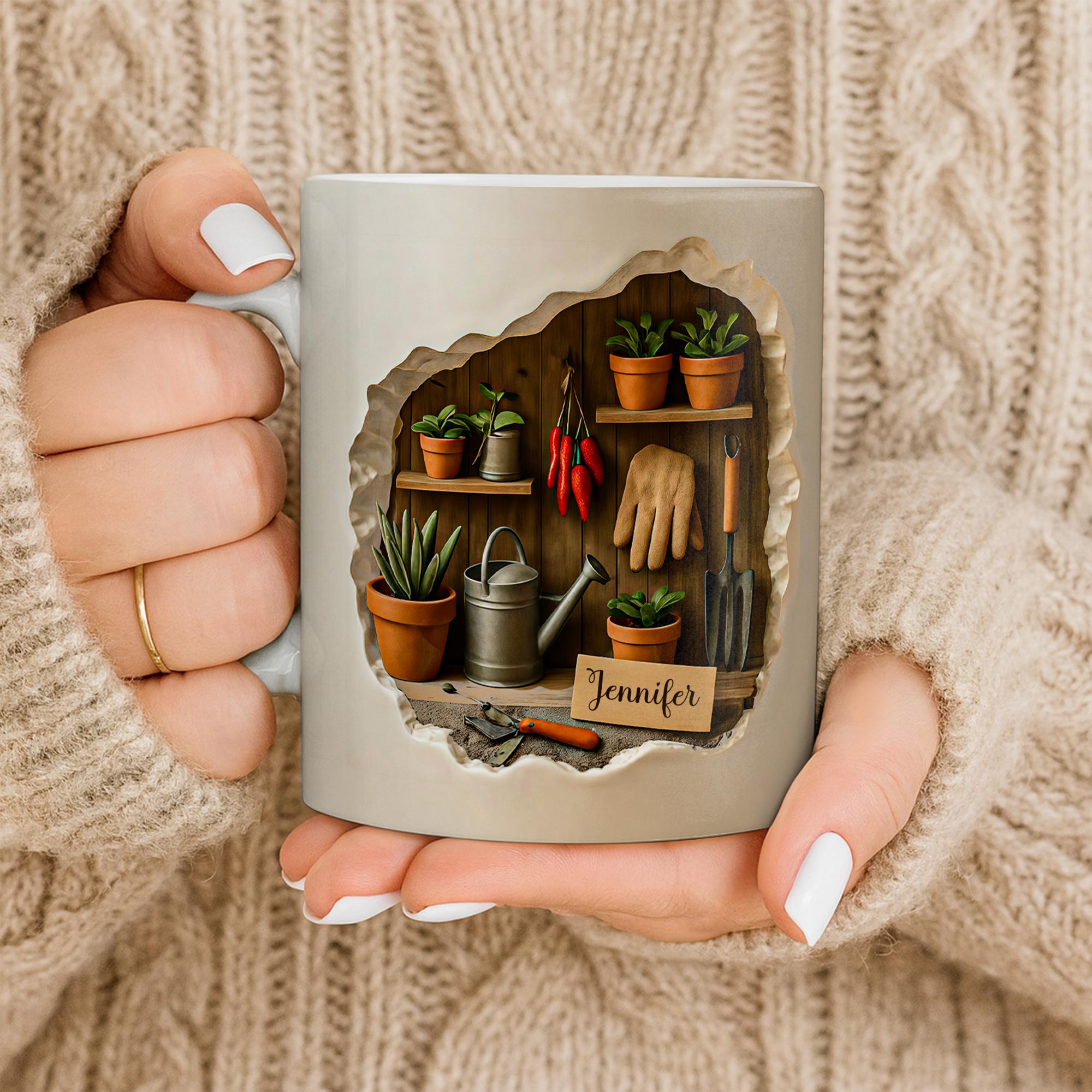 Photo is a 2D the actual mug is just a simple print. Does not look like photo