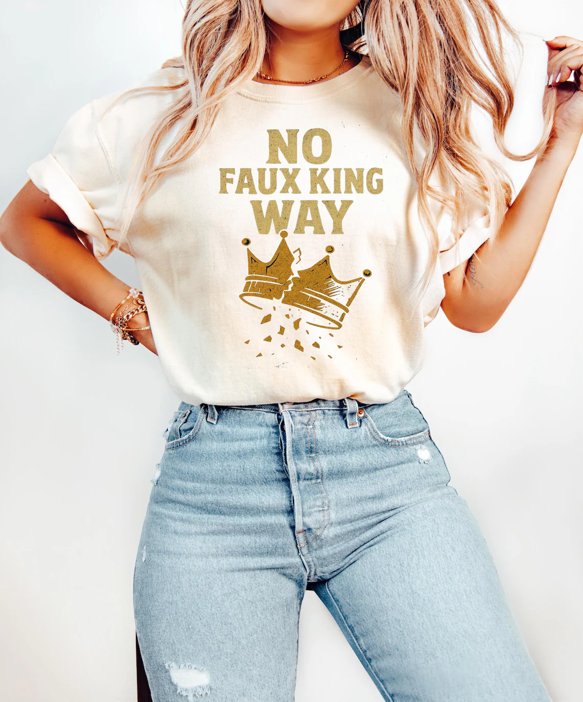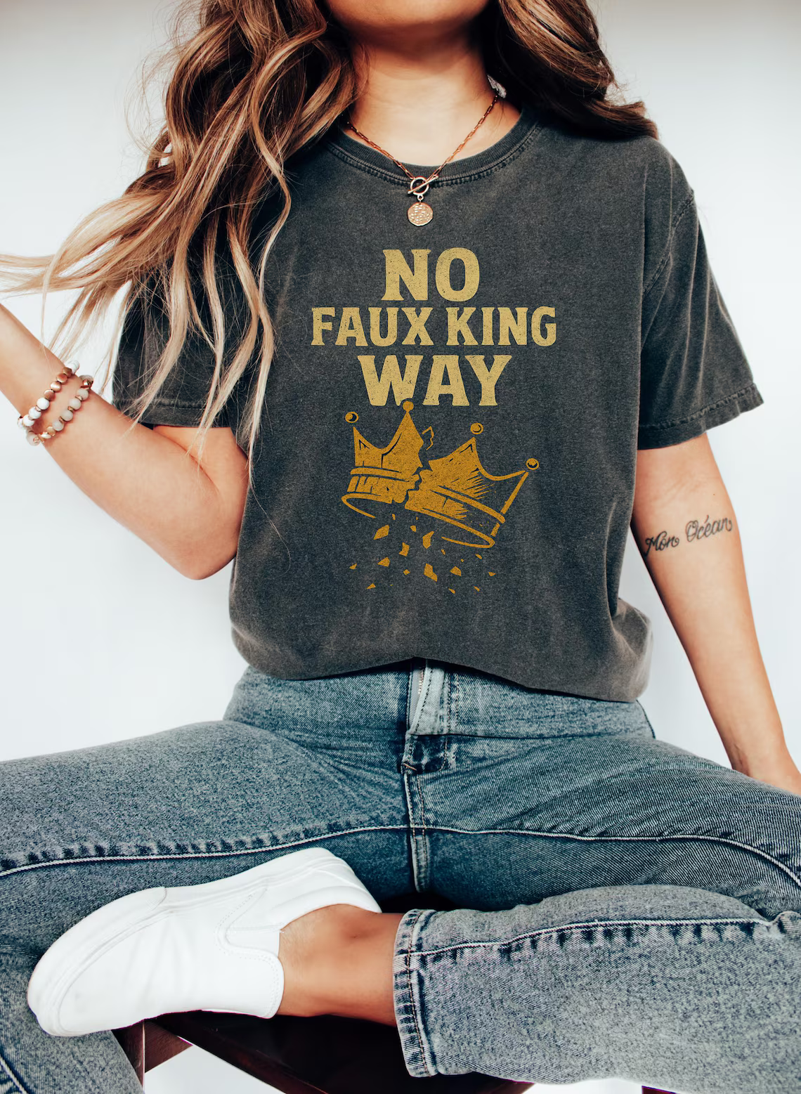 No Faux King Way Shirt Political Protest T Shirt Snarky No Kings In America Outfit Snarky Tee