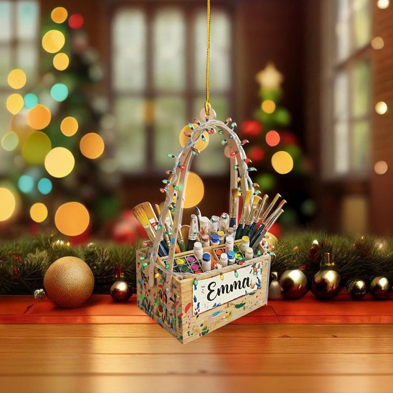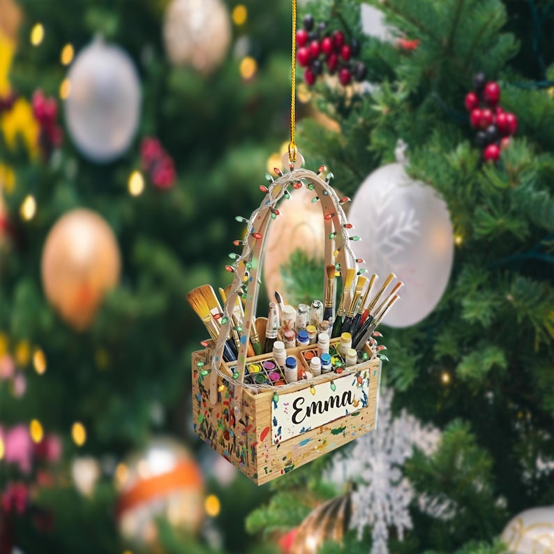 Personalized Artist Ornament, Custom Painter Gift, Paintbrush & Palette Christmas Decor, Art Lover Tree Ornament with Name