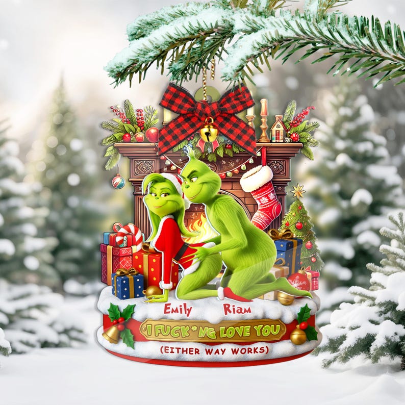 Personalized Green Monster Couple Christmas, I Fcking Love You - Either Way Works Holiday Tree Decoration, Flat 2D 2 Layer Acrylic Ornament