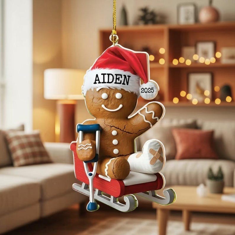 Personalized Injured Gingerbread Acrylic Ornament, Custom Broken Leg Christmas Tree Ornament, Flat 2D Ornament Decor Gift, Xmas Gifts