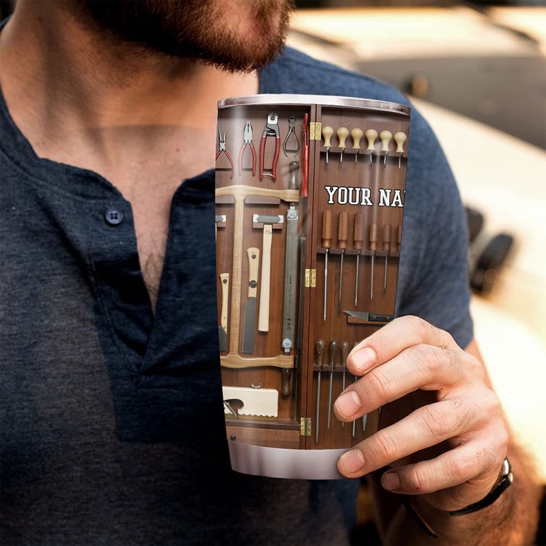 Personalized Wooden Tools Tumbler, Construction Tumbler, Carpenter Tumbler, Carpenter Travel Mug, Woodworker Tumbler, Gift For Carpenter