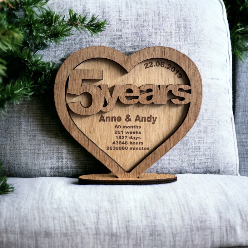 5th Wedding Wood Anniversary Card Keepsake PERSONALISED Gifts Husband Wife 5 Years Couple Gift for Her Him Wooden Custom Valentines Day