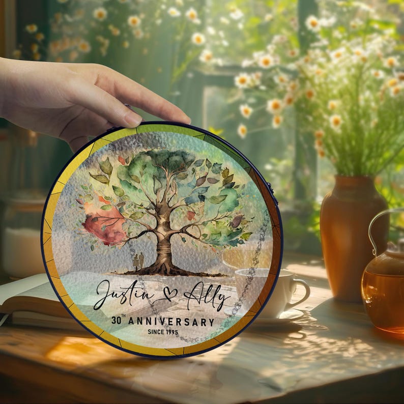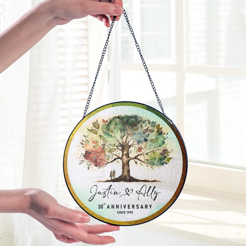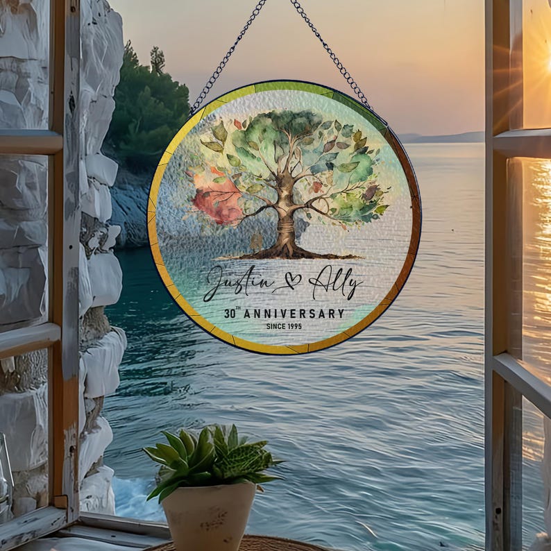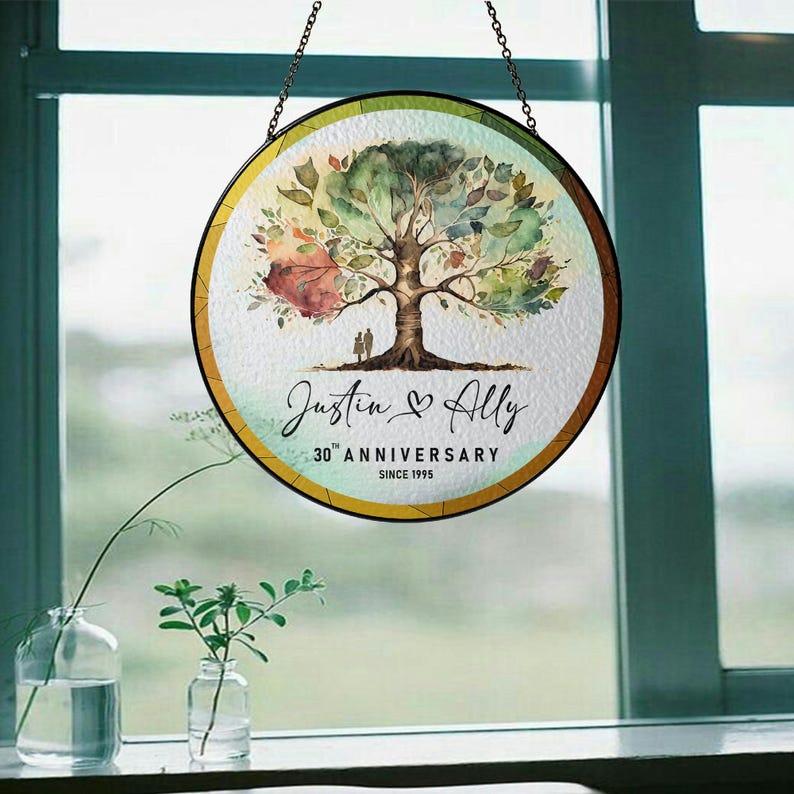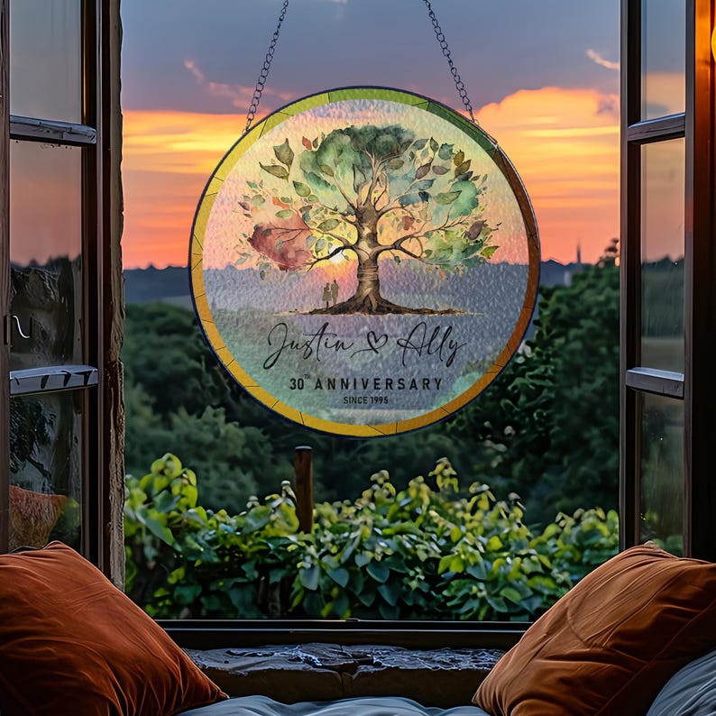 Anniversary Glass Suncatcher, Personalized Wedding Gift, Anniversary Present for Couples, Gift for Couples, Wedding Memory Glass
