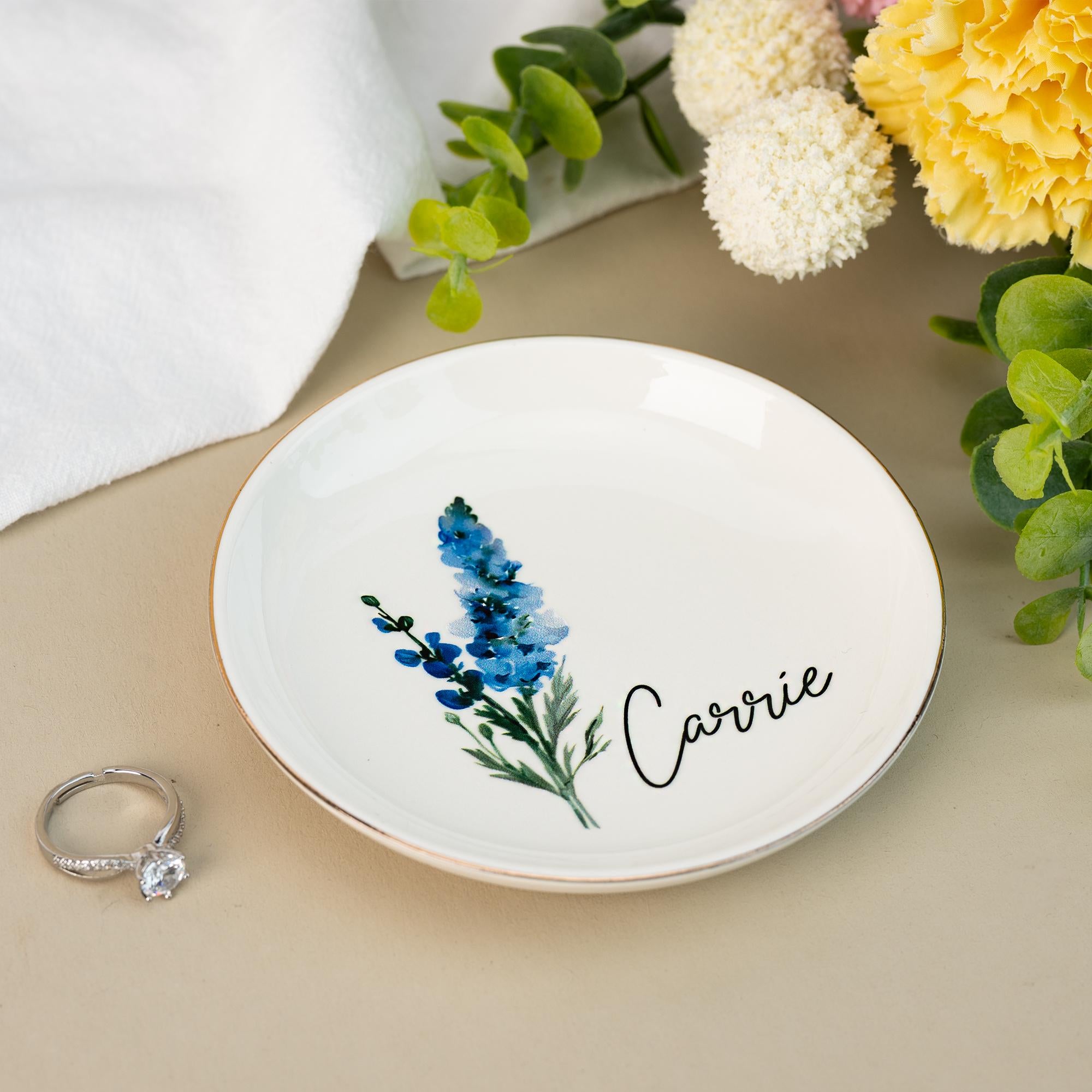 Personalised Birth Flower Trinket Dish, Watercolor Flower Ring Dish, Birthday Jewelry Dish Gift for Friend, Wedding Bridesmaid Gift