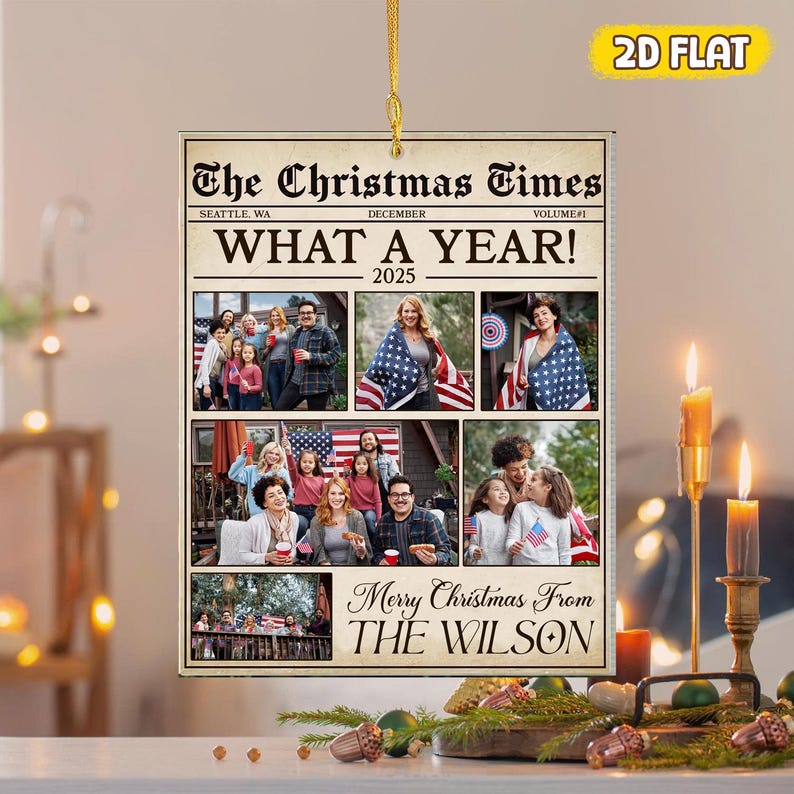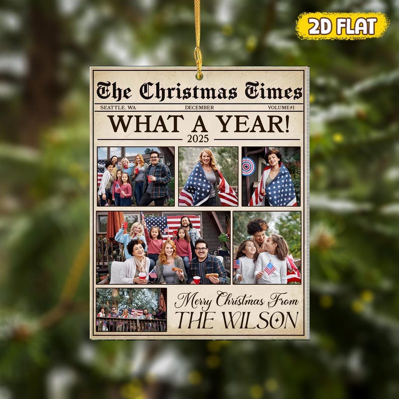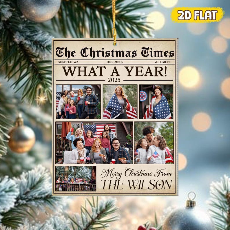 Personalized Family Photo 2D Flat Ornament, Newspaper Ornament, Custom Besties Christmas Tree Ornament, Family Photo Keepsake, Xmas Gift
