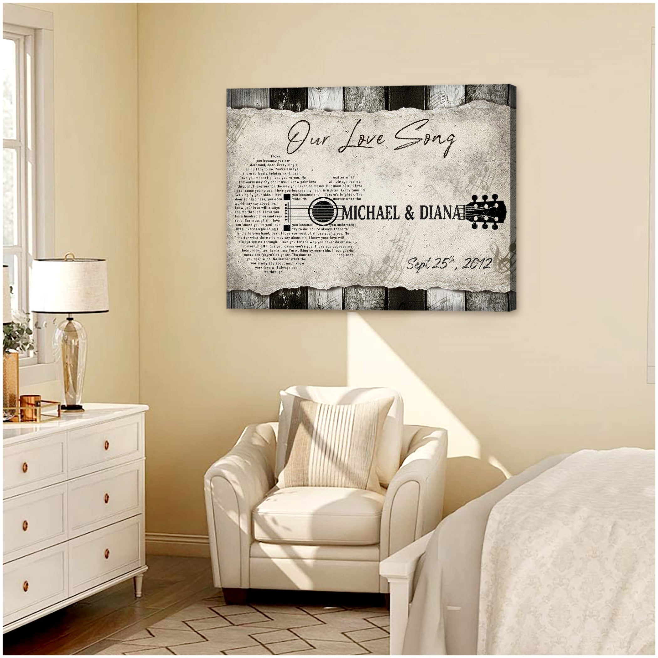 Personalized Guitar Shaped Song Lyrics On Canvas Music, Gift For Couple, Anniversary Gifts, Valentine's Day Gift