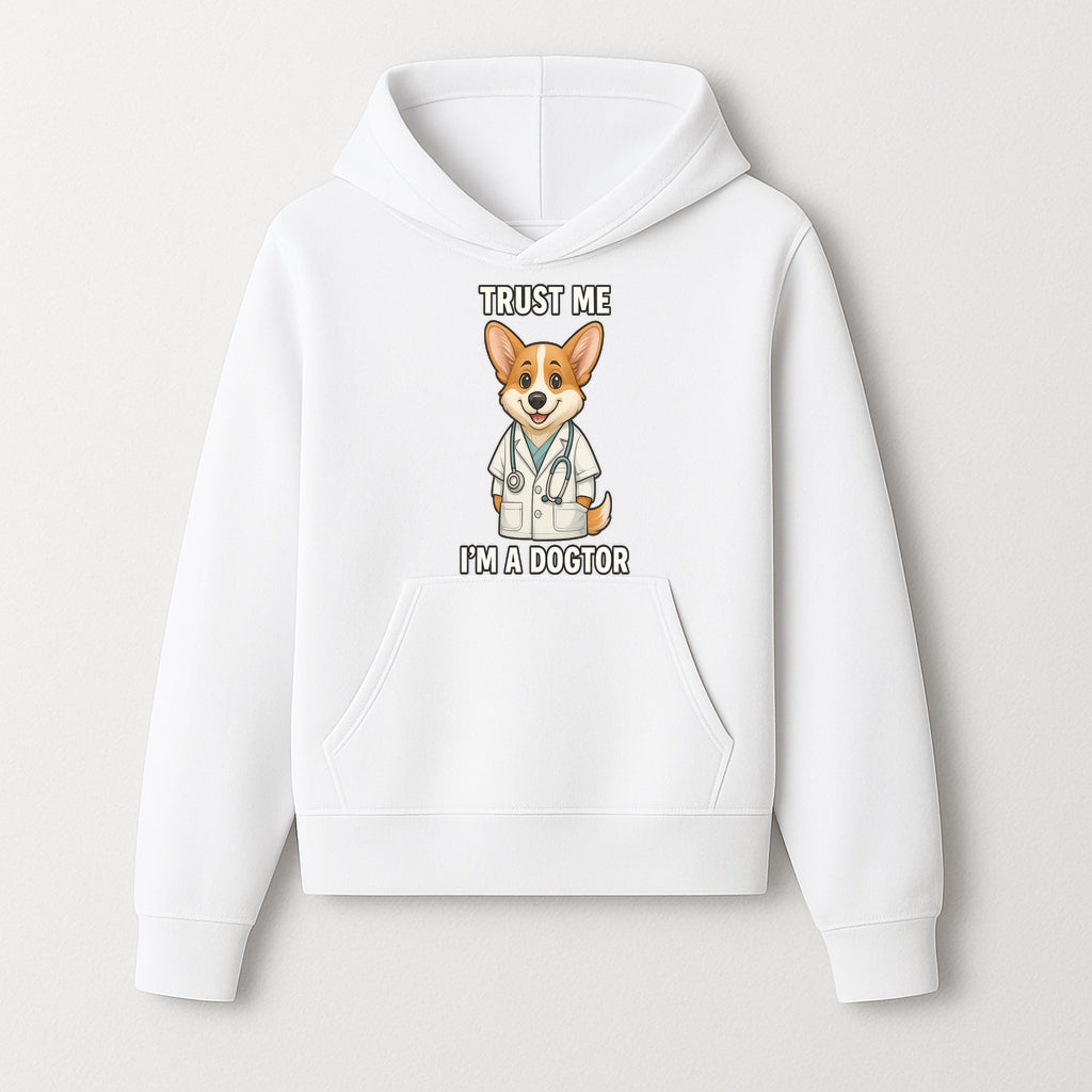 Corgi Doctor T-Shirt - Trust Me I'm a Dogtor Fun Pet Lover Gift, Cute Animal Medical Theme Apparel for Dog Owners - Hoodie
