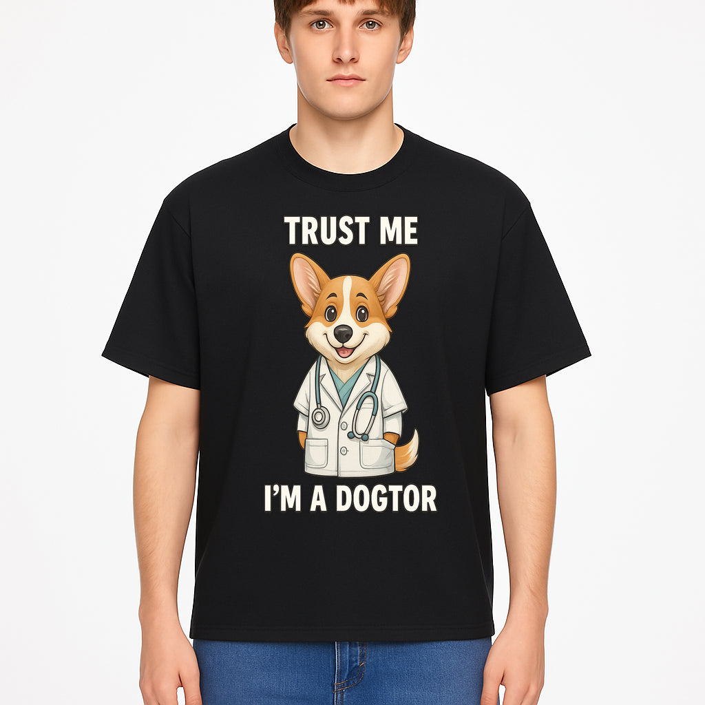 Corgi Doctor T-Shirt - Trust Me I'm a Dogtor Fun Pet Lover Gift, Cute Animal Medical Theme Apparel for Dog Owners - T-shirt