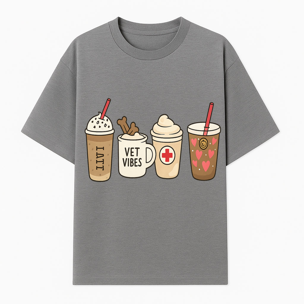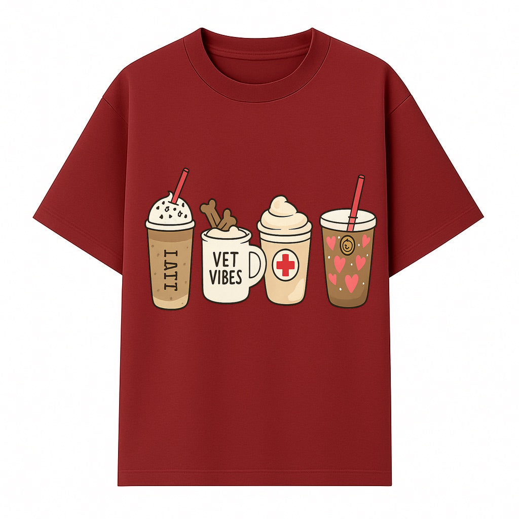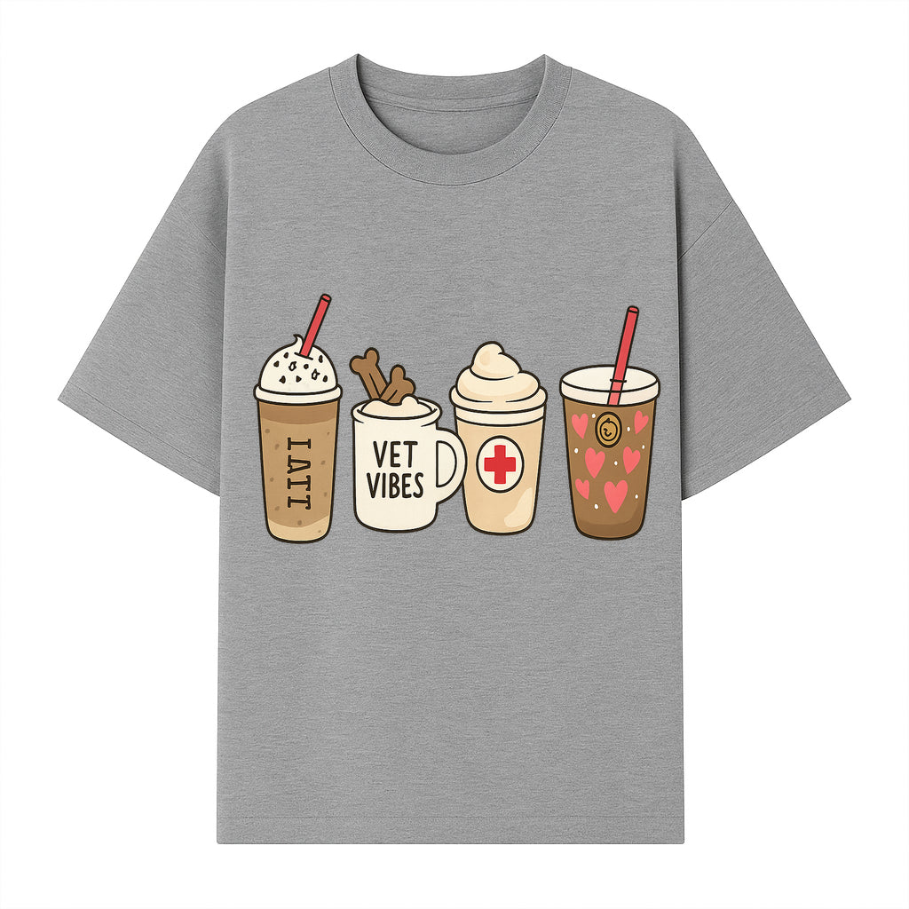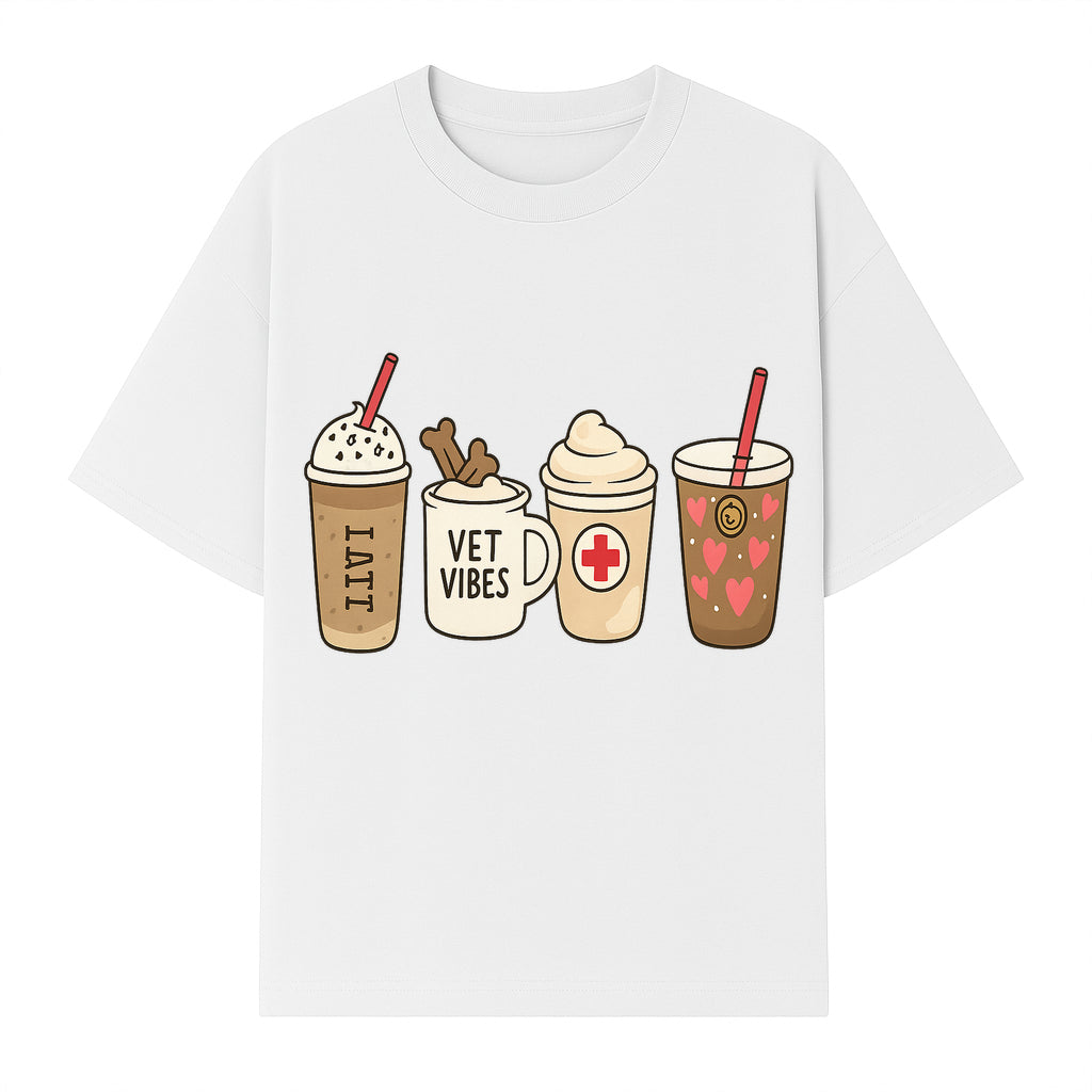 Cute Coffee and Pet-Themed Stickers Set - Vet Vibes Drink Art for Animal Lovers, Fun Home Decor and Gifts - T-shirt