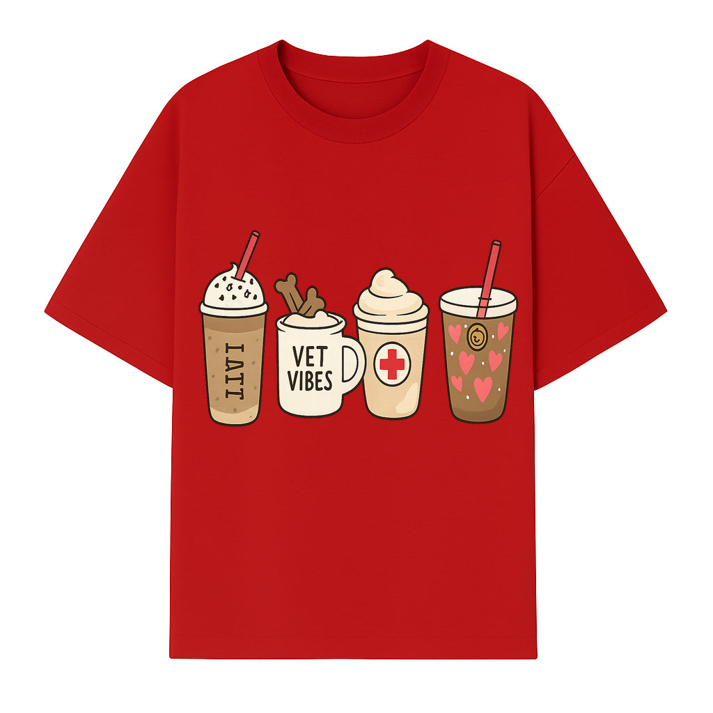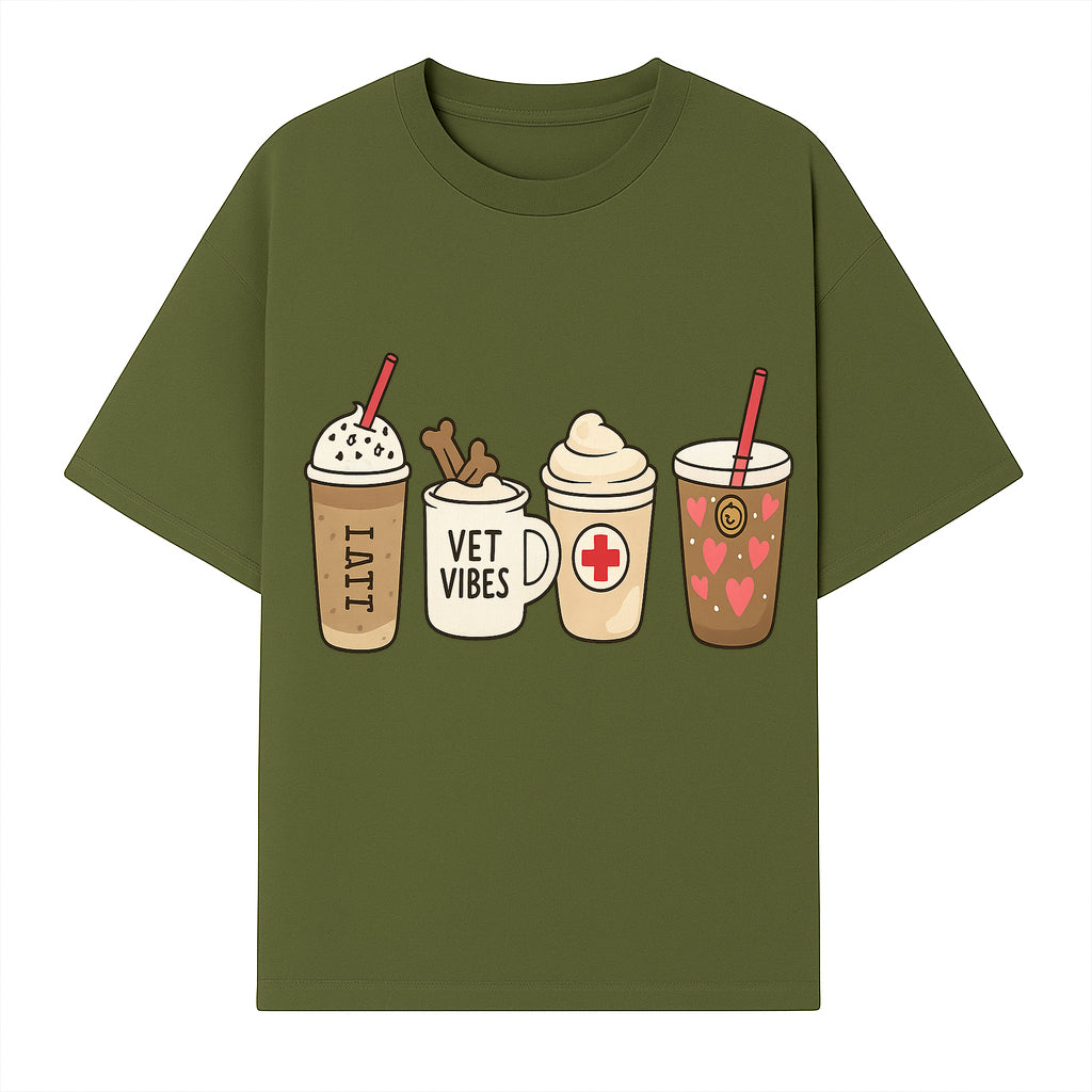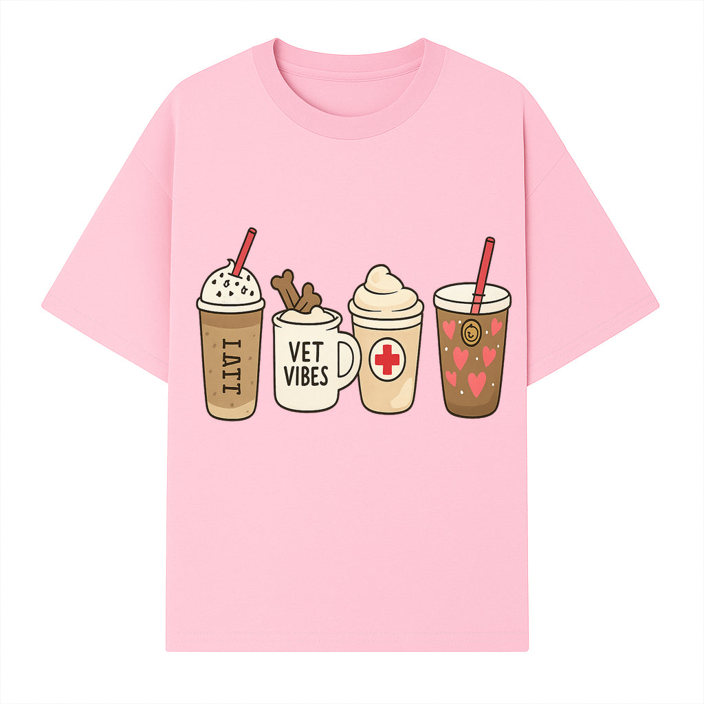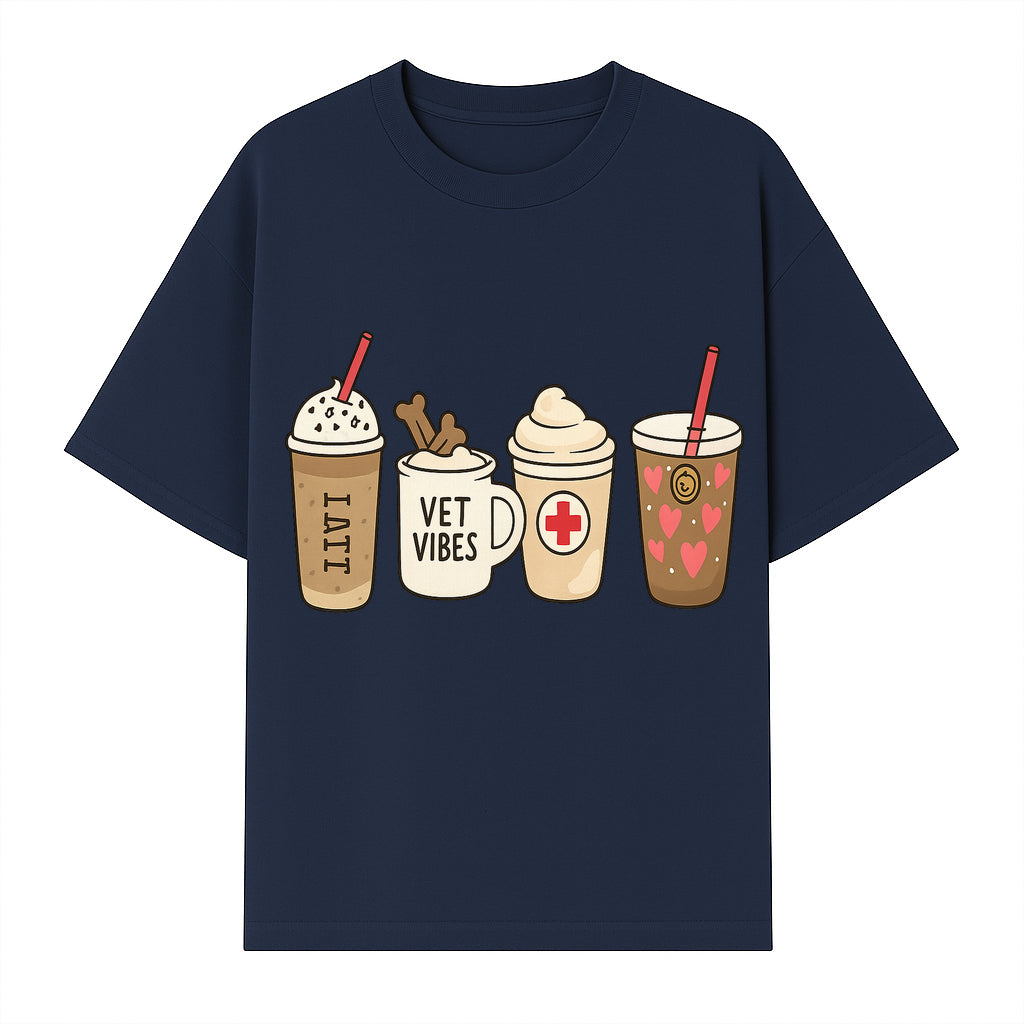 Cute Coffee and Pet-Themed Stickers Set - Vet Vibes Drink Art for Animal Lovers, Fun Home Decor and Gifts - T-shirt