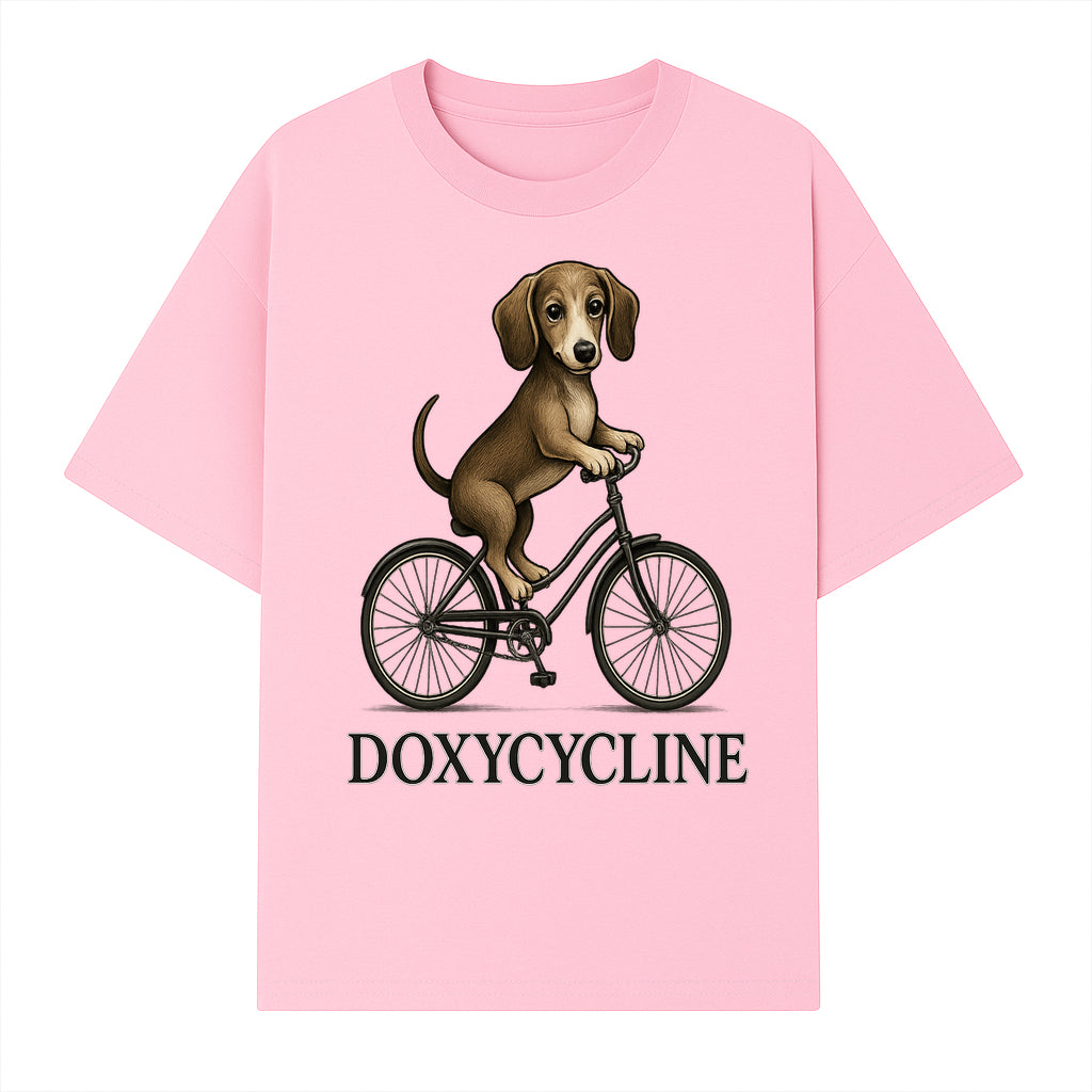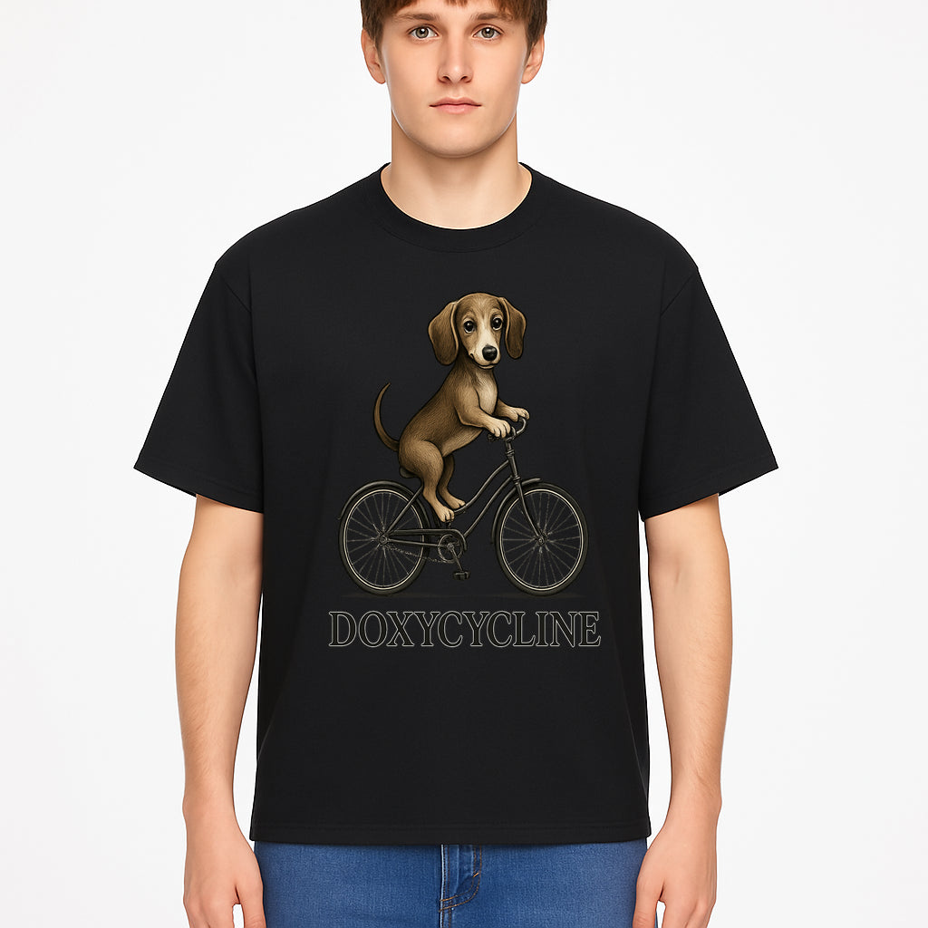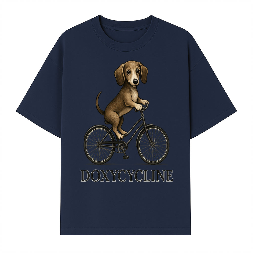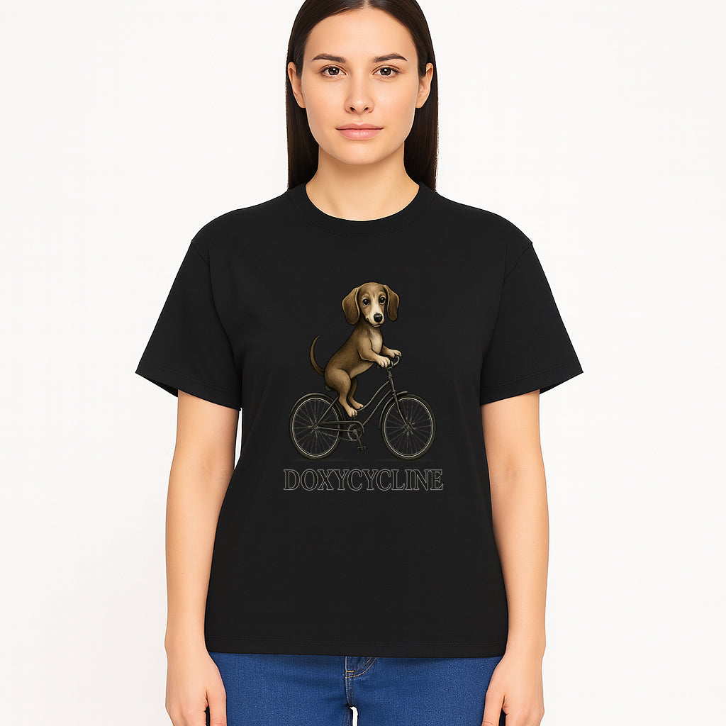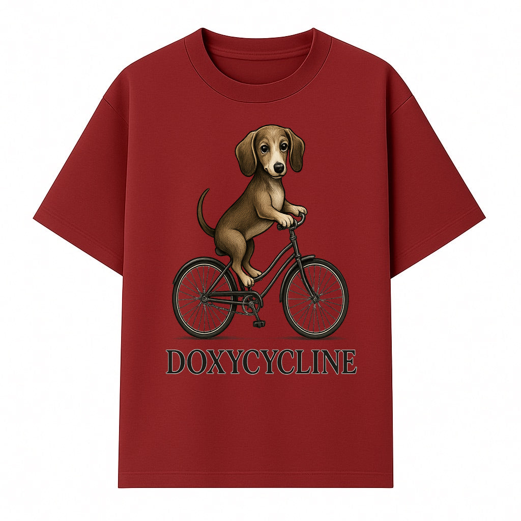 Doxycycline Dog Bicycle Art Print | Cute Dog Riding Bike Wall Decor | Pet Lover Gift | Whimsical Animal Illustration - T-shirt