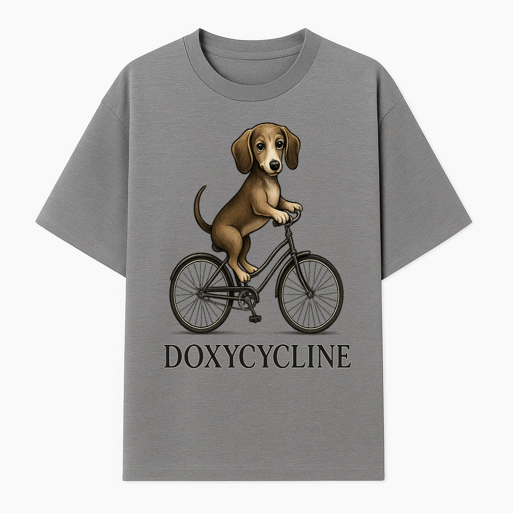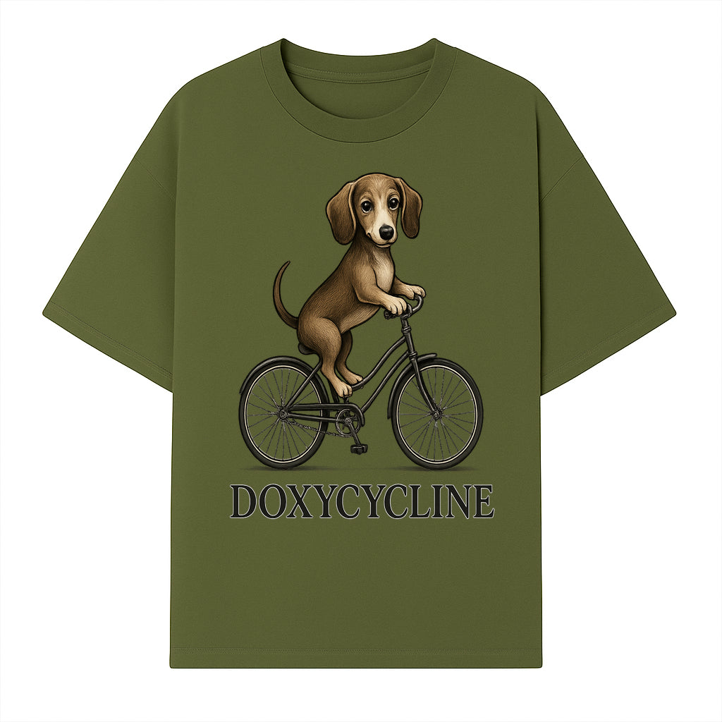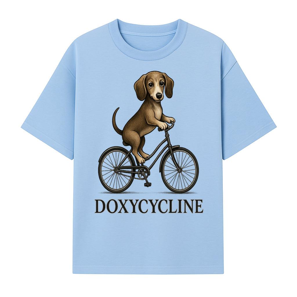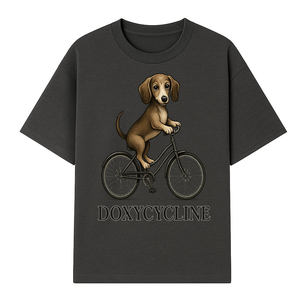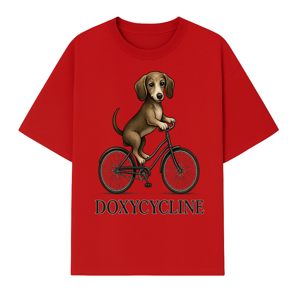 Doxycycline Dog Bicycle Art Print | Cute Dog Riding Bike Wall Decor | Pet Lover Gift | Whimsical Animal Illustration - T-shirt