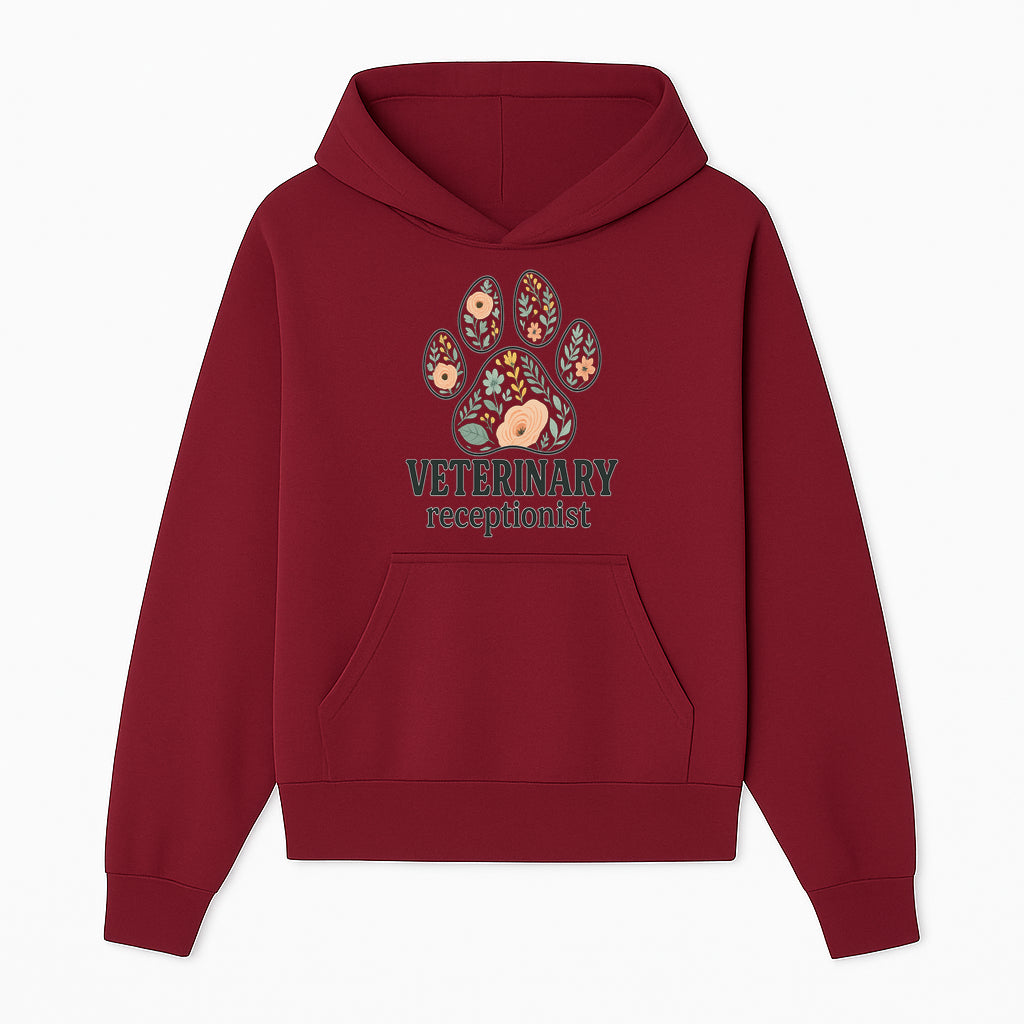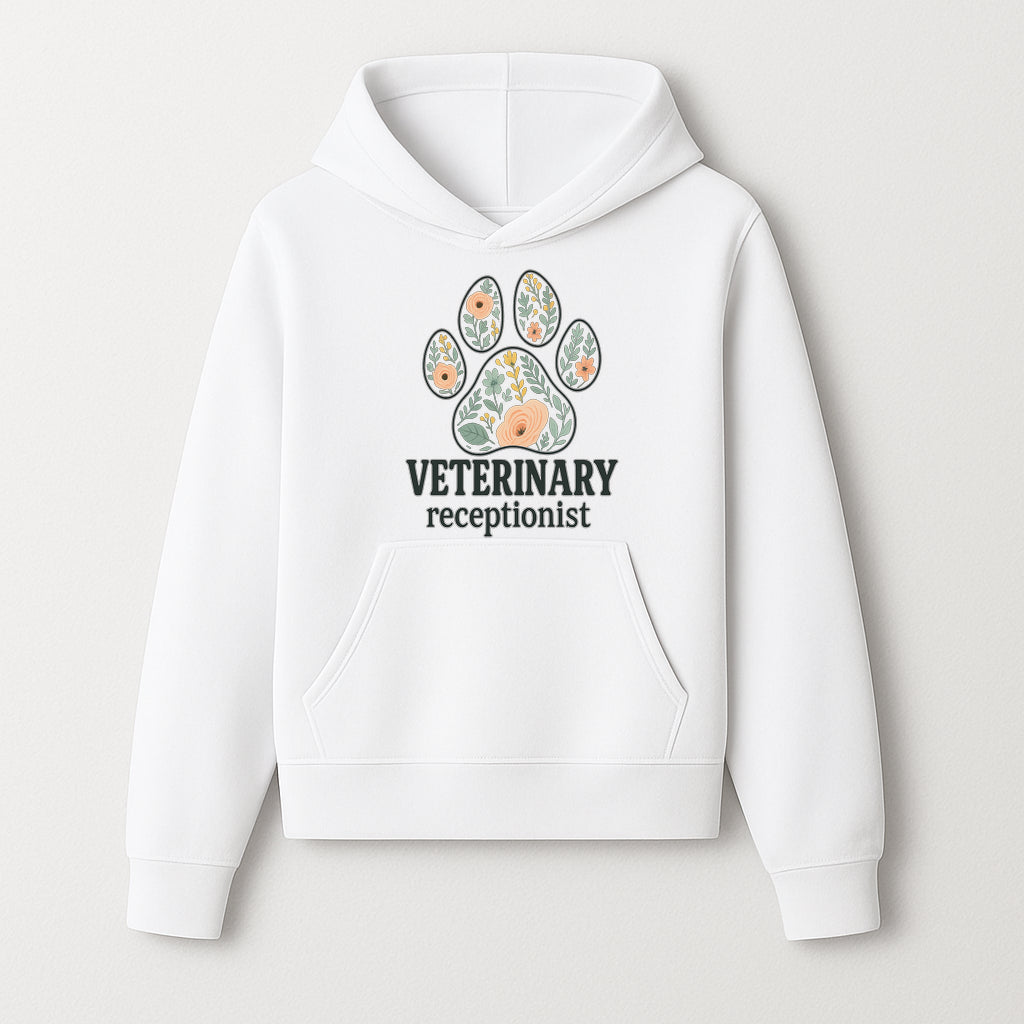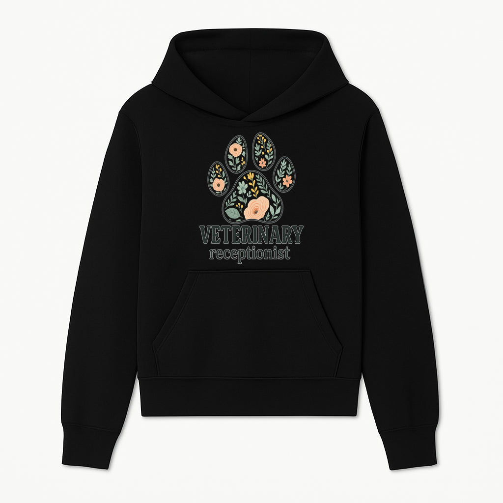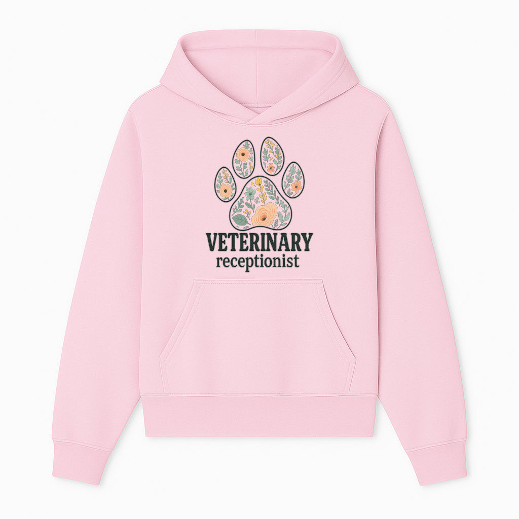 Floral Paw Print Veterinary Receptionist Sign | Pet Care Office Decor | Animal Hospital Reception Wall Art - Hoodie
