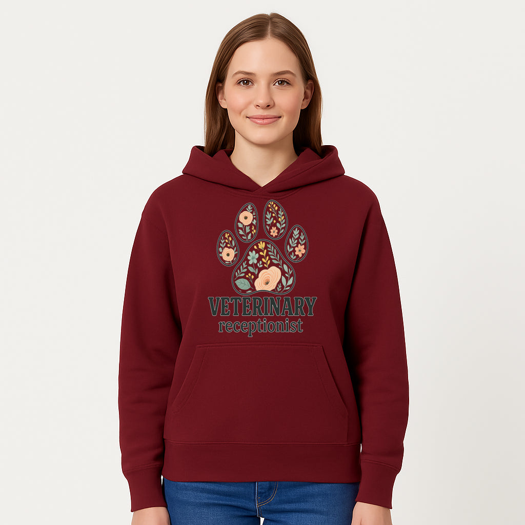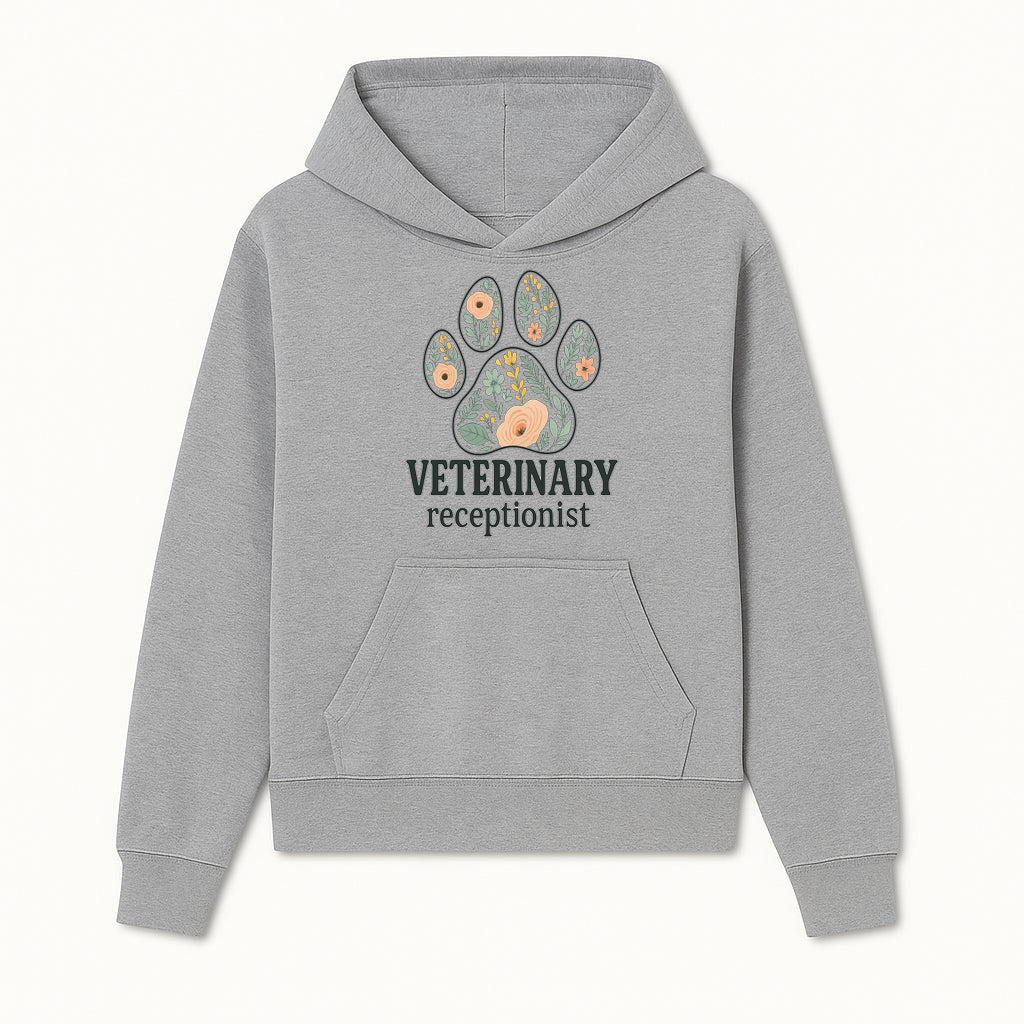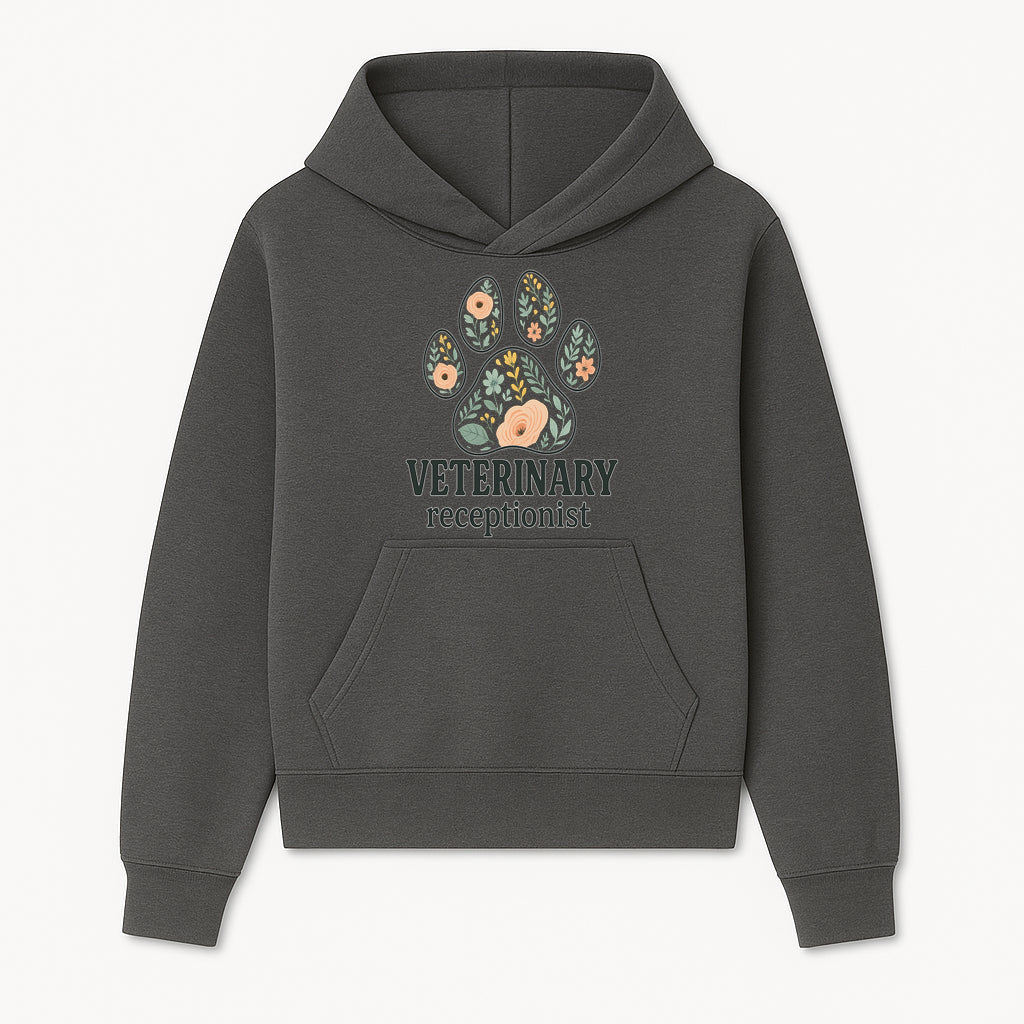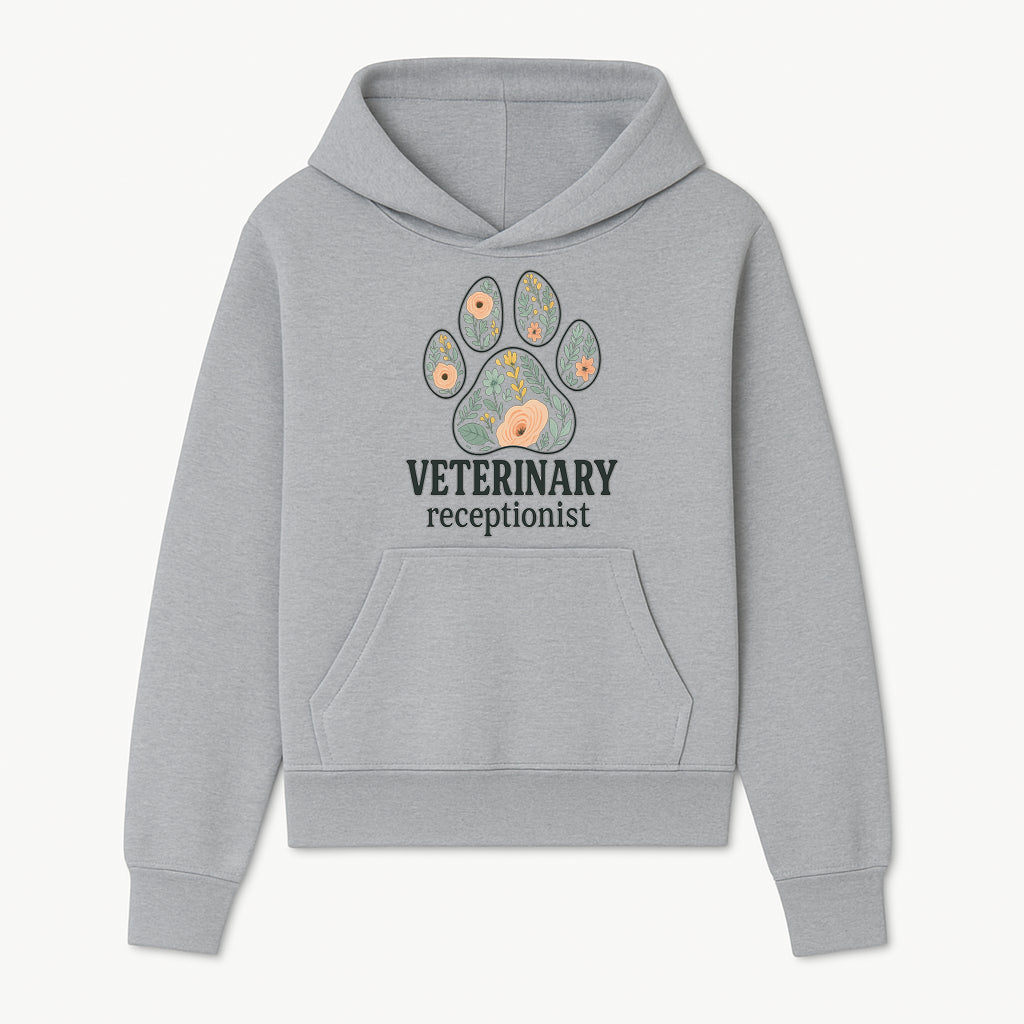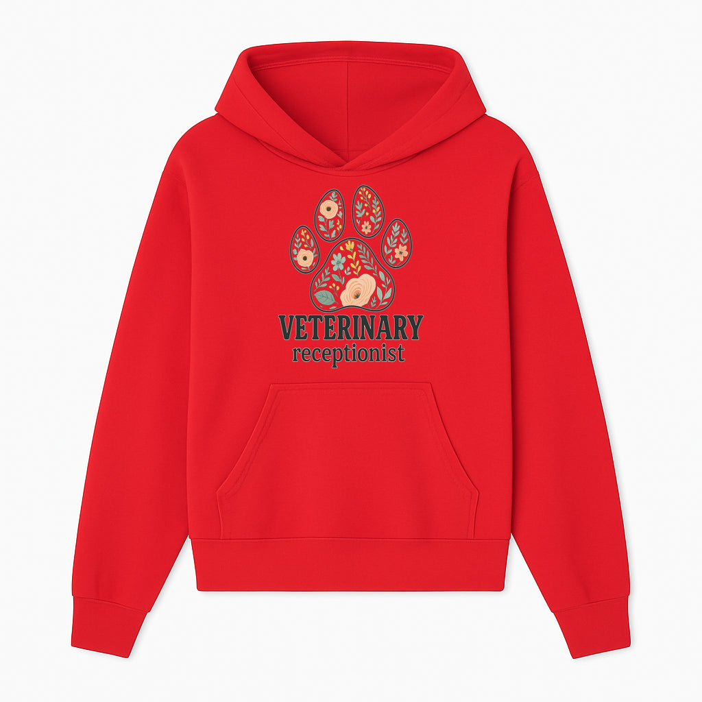 Floral Paw Print Veterinary Receptionist Sign | Pet Care Office Decor | Animal Hospital Reception Wall Art - Hoodie