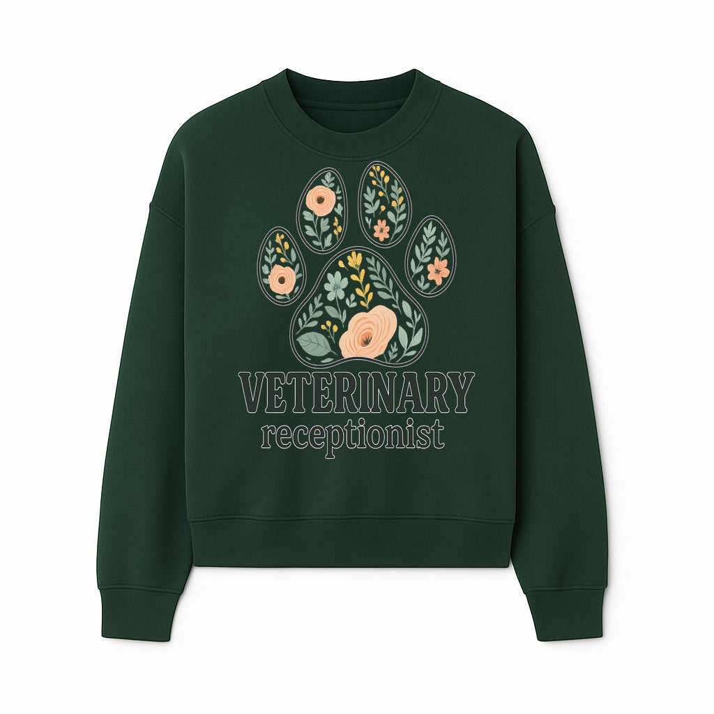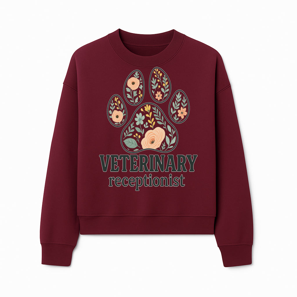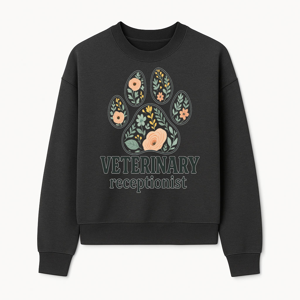 Floral Paw Print Veterinary Receptionist Sign | Pet Care Office Decor | Animal Hospital Reception Wall Art - Sweatshirt