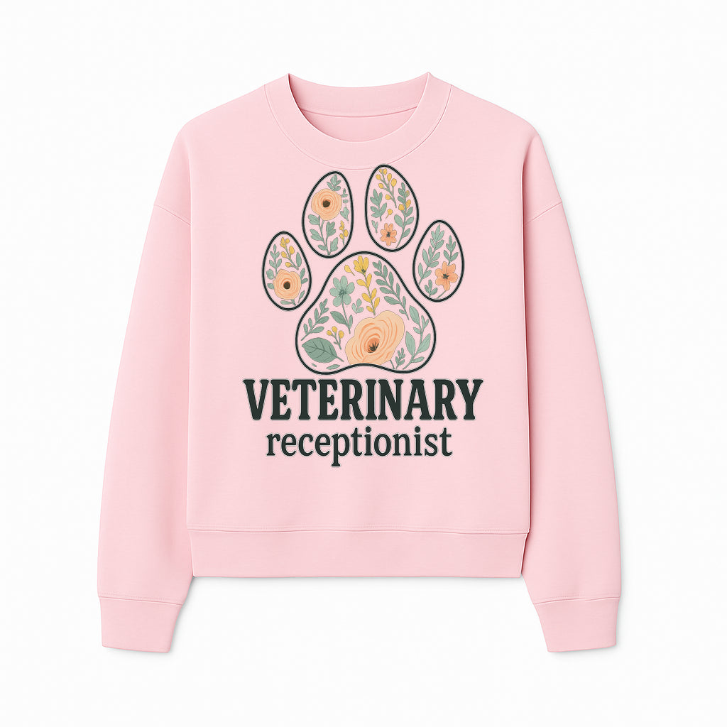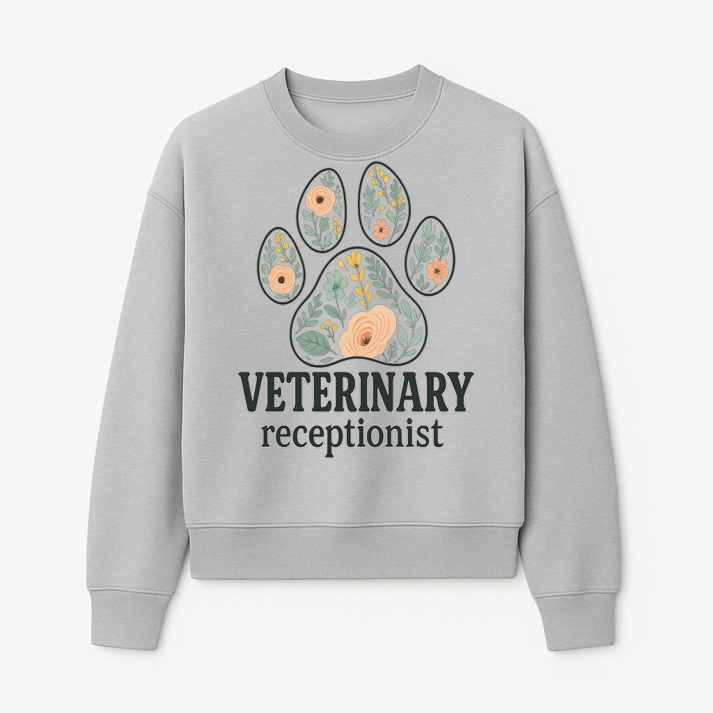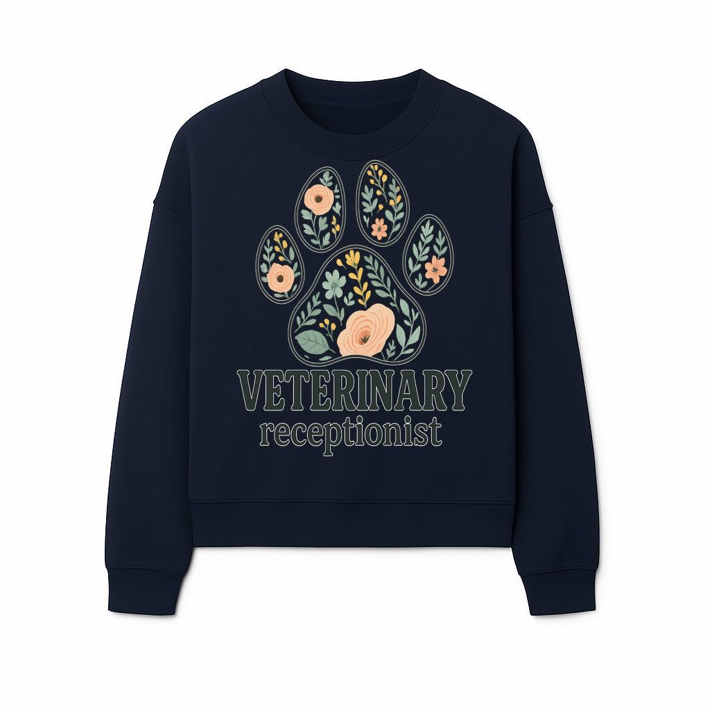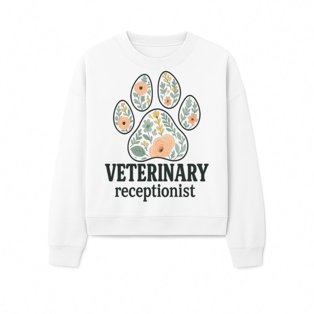 Floral Paw Print Veterinary Receptionist Sign | Pet Care Office Decor | Animal Hospital Reception Wall Art - Sweatshirt