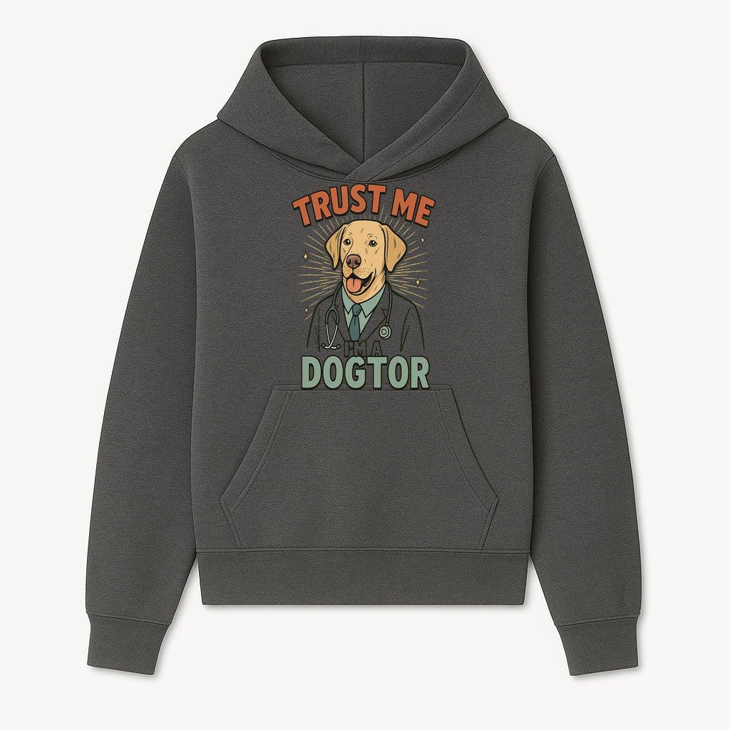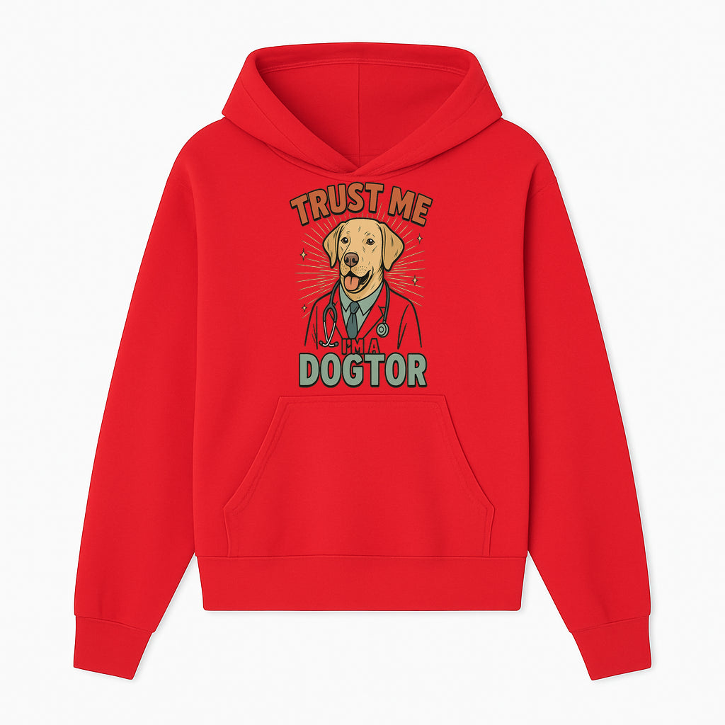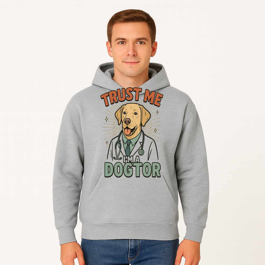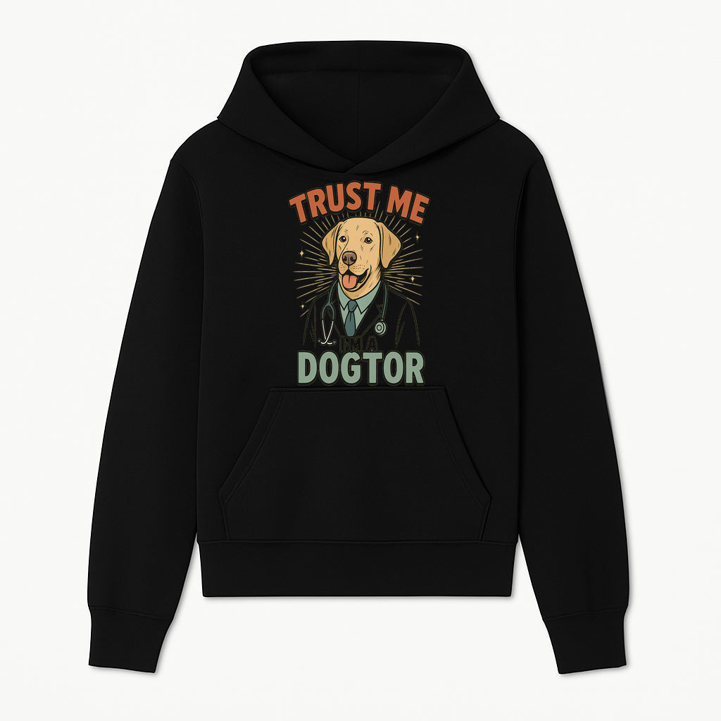 Funny Dog Doctor T-Shirt, Trust Me I'm A Dogtor, Cute Labrador Veterinary Humor Gift for Pet Lovers and Veterinarians - Hoodie