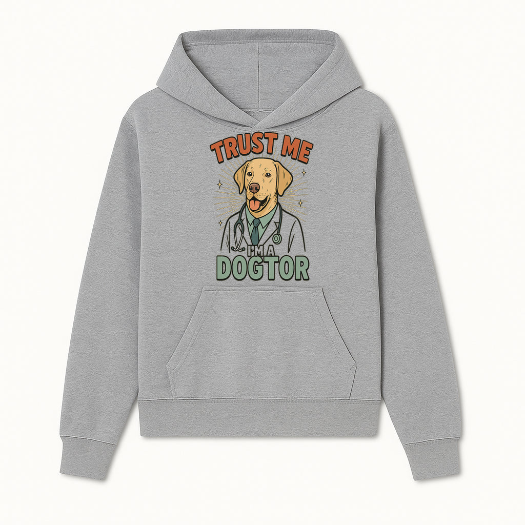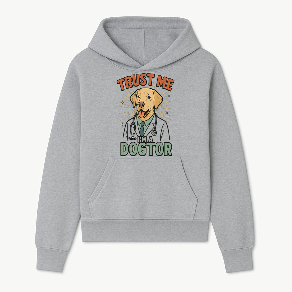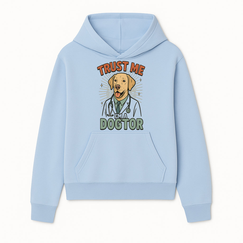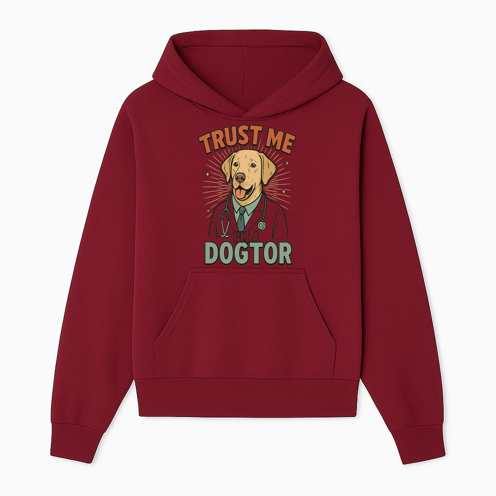 Funny Dog Doctor T-Shirt, Trust Me I'm A Dogtor, Cute Labrador Veterinary Humor Gift for Pet Lovers and Veterinarians - Hoodie