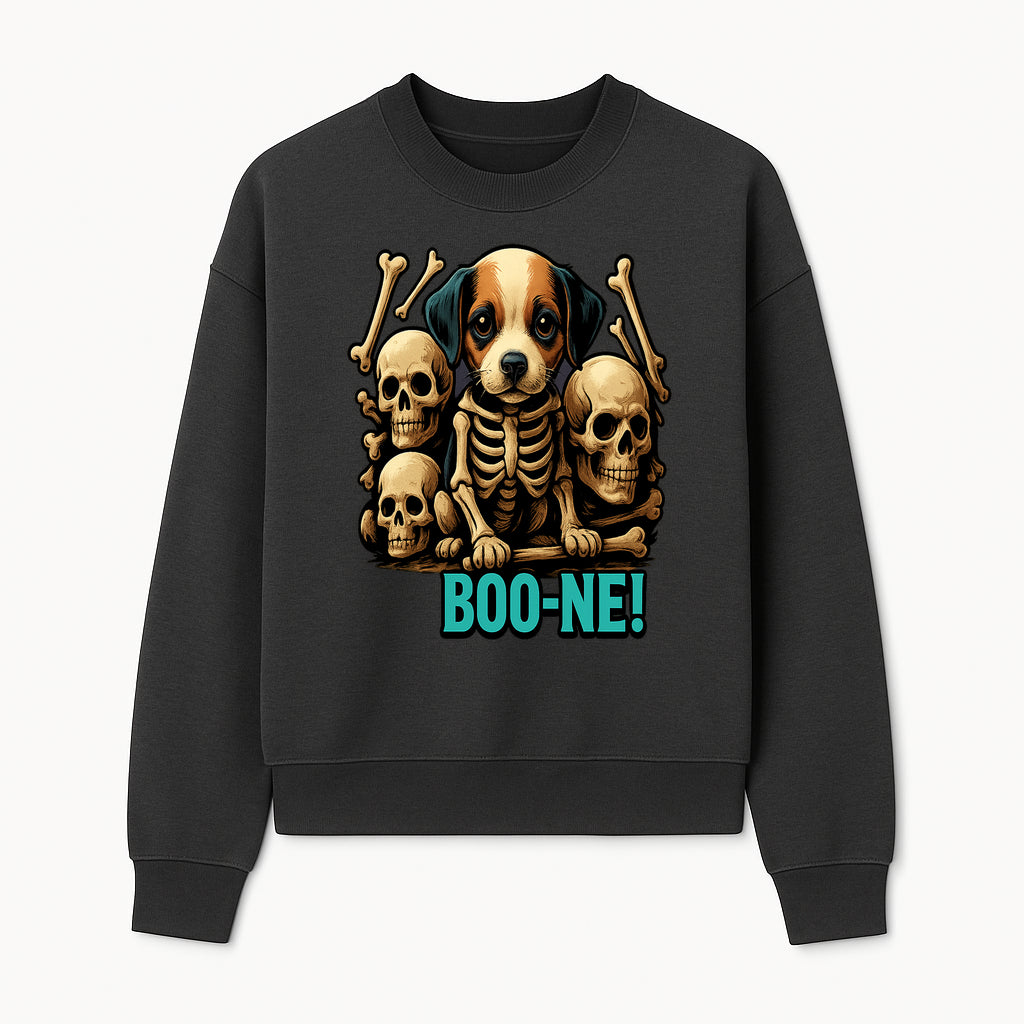 Funny Halloween Dog Skeleton Art T-Shirt | Boo-ne! Graphic Tee with Skull Design | Spooky Pet Lover Apparel - Sweatshirt