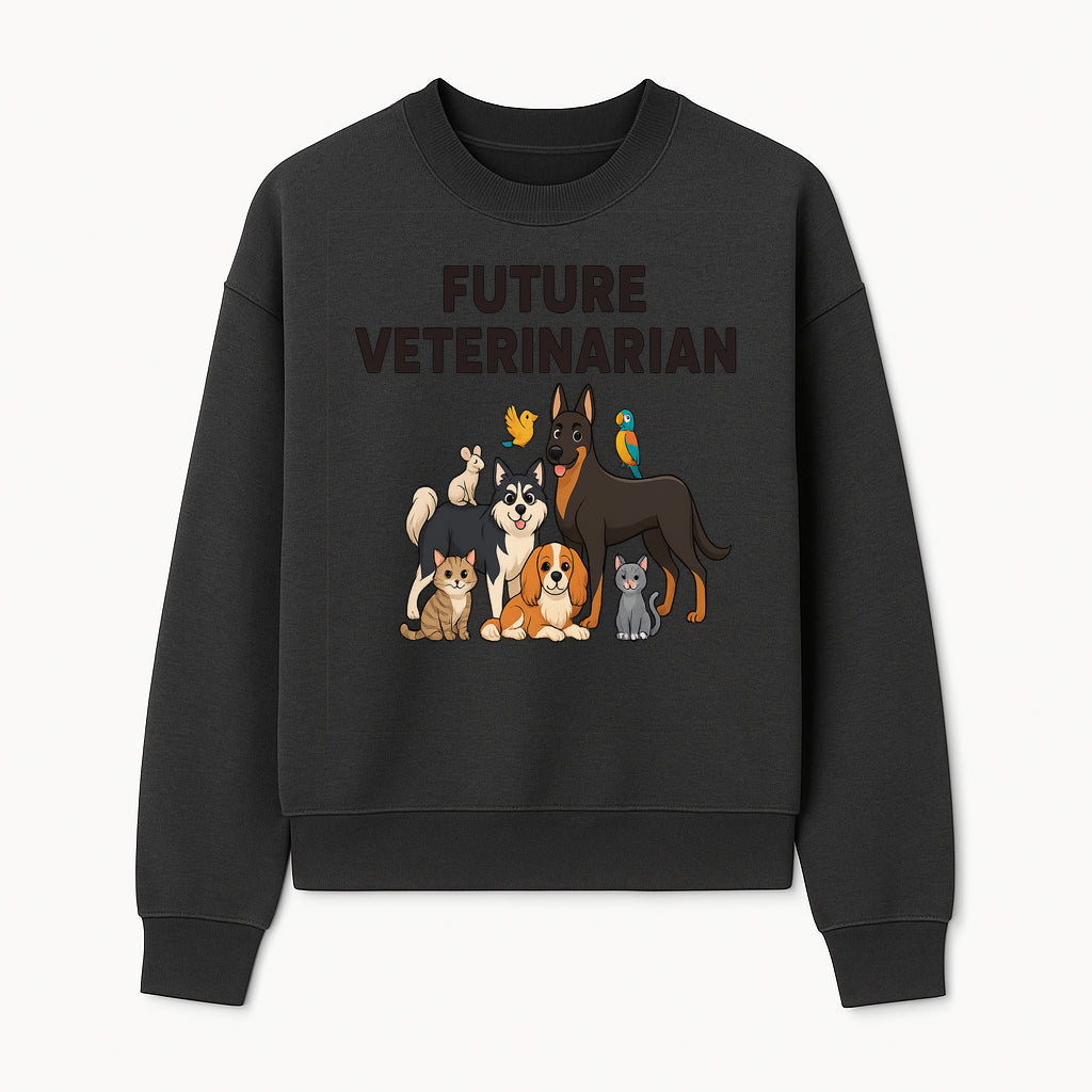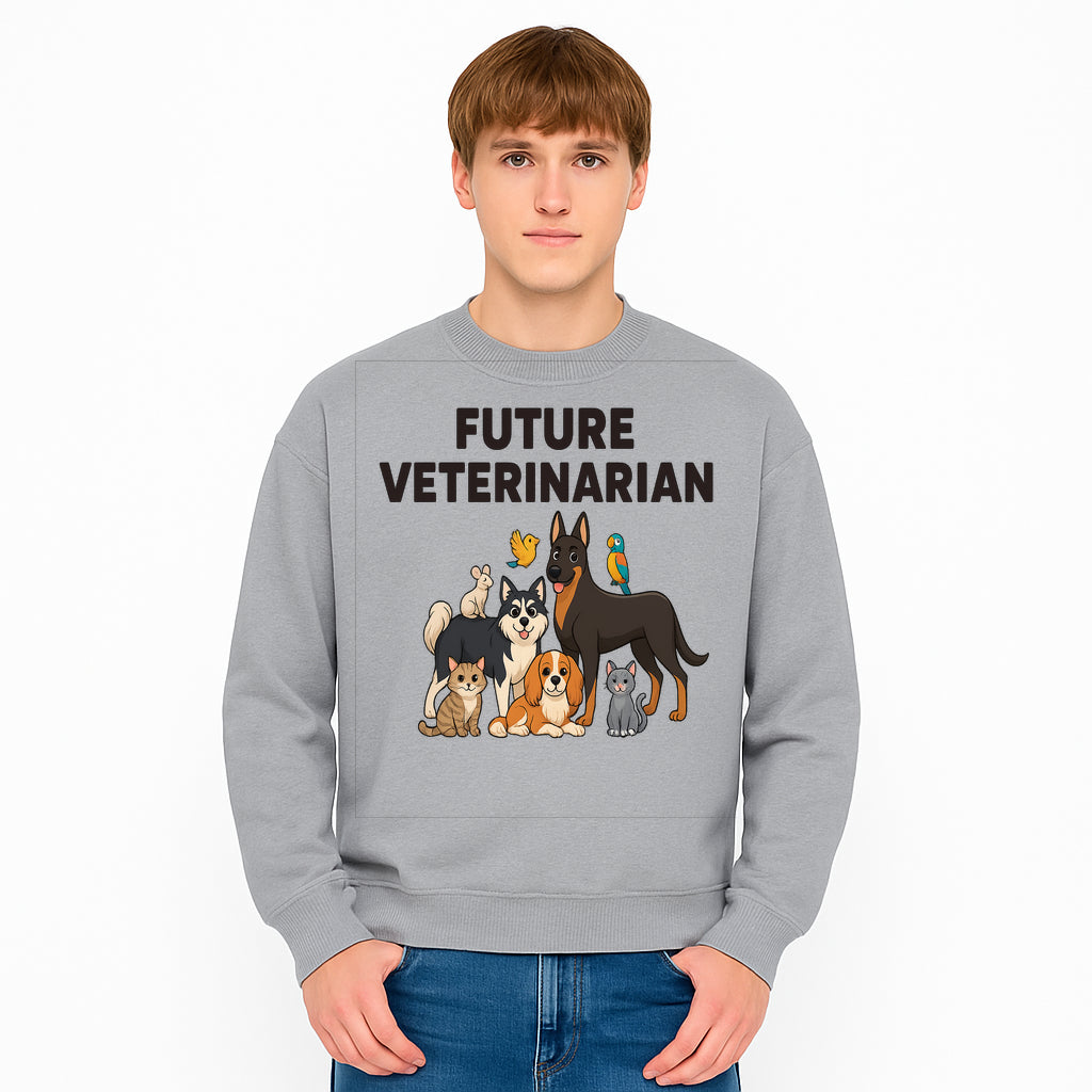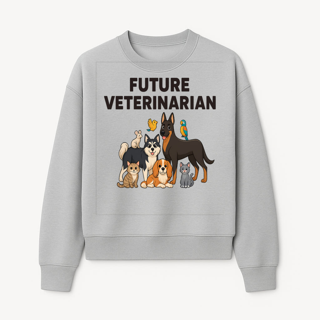 Future Veterinarian Cartoon Design with Cute Pets Dog, Cat, Bird, and More Ideal for Kids and Animal Lovers' Apparel - Sweatshirt