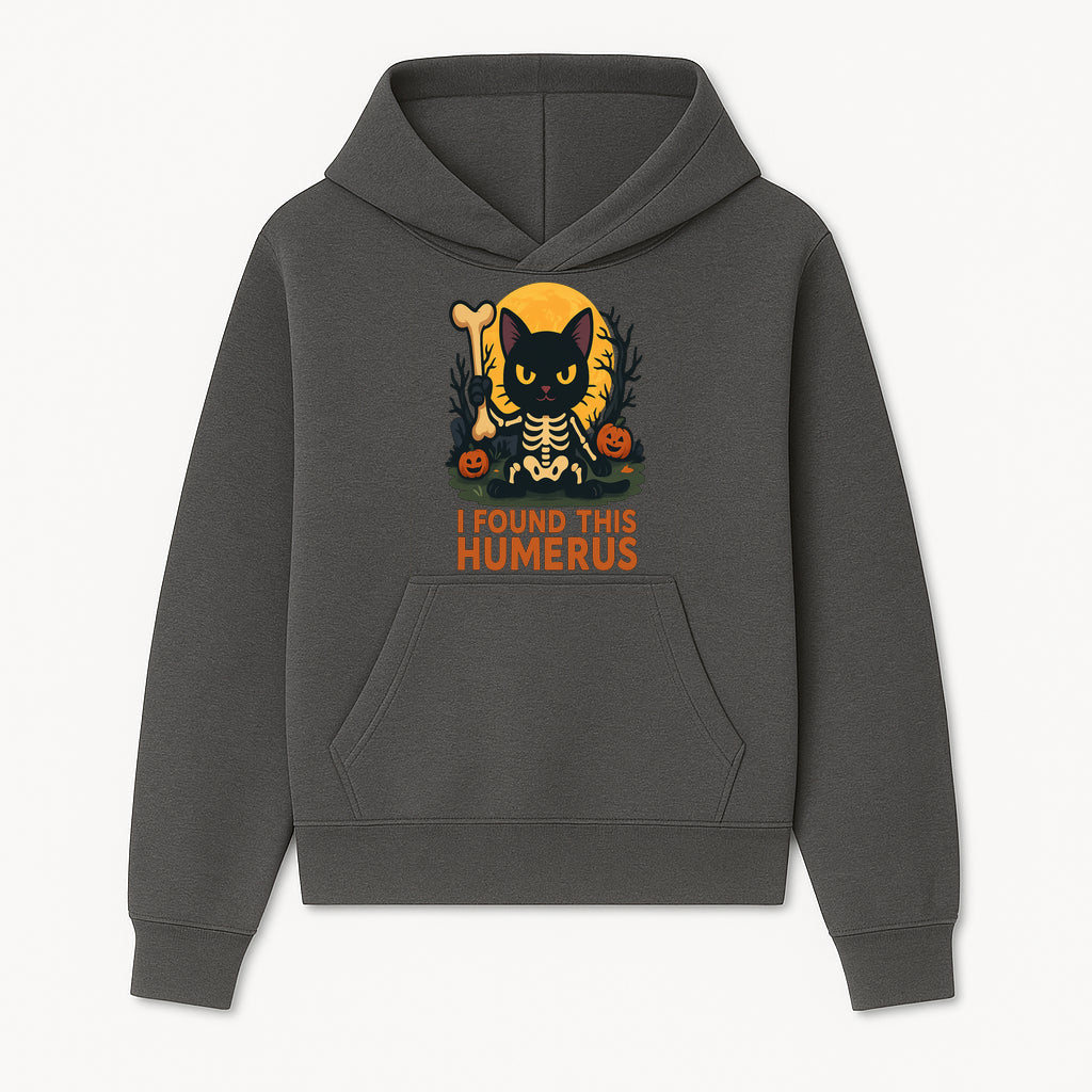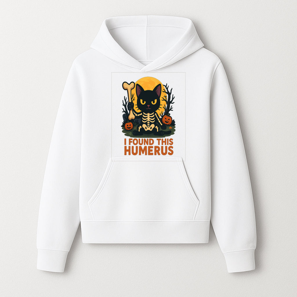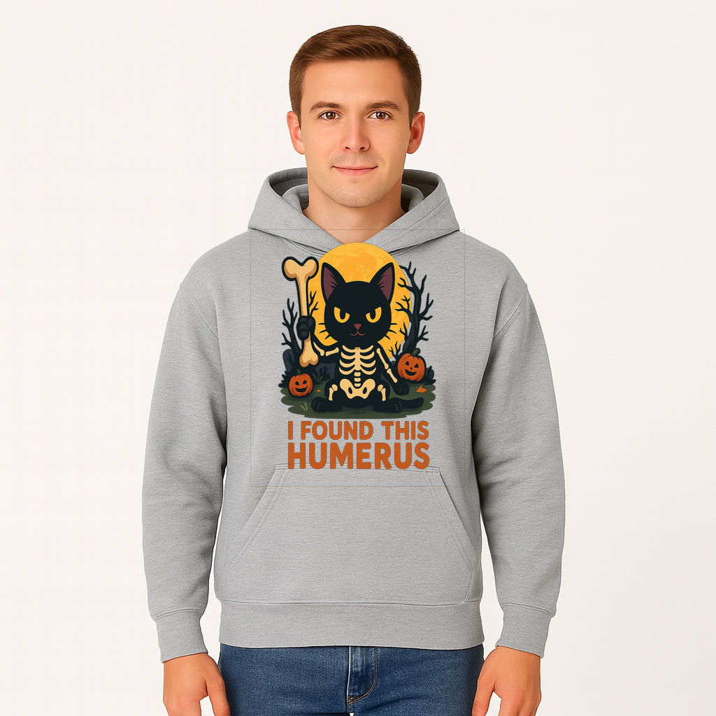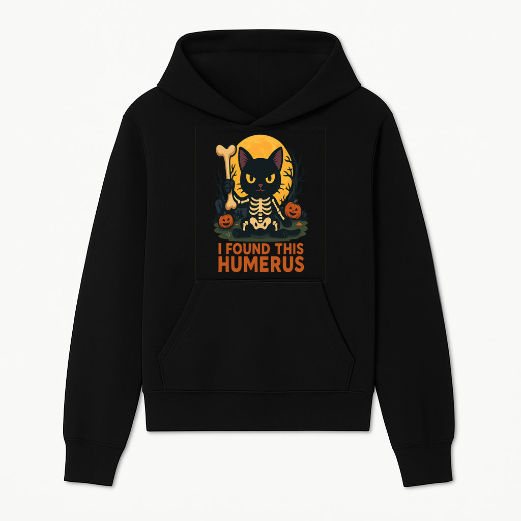 Halloween Black Cat Skeleton with Bone, I Found This Humerus Cute Pumpkin Design, Spooky Decor, Fun Trick or Treat Gift - Hoodie