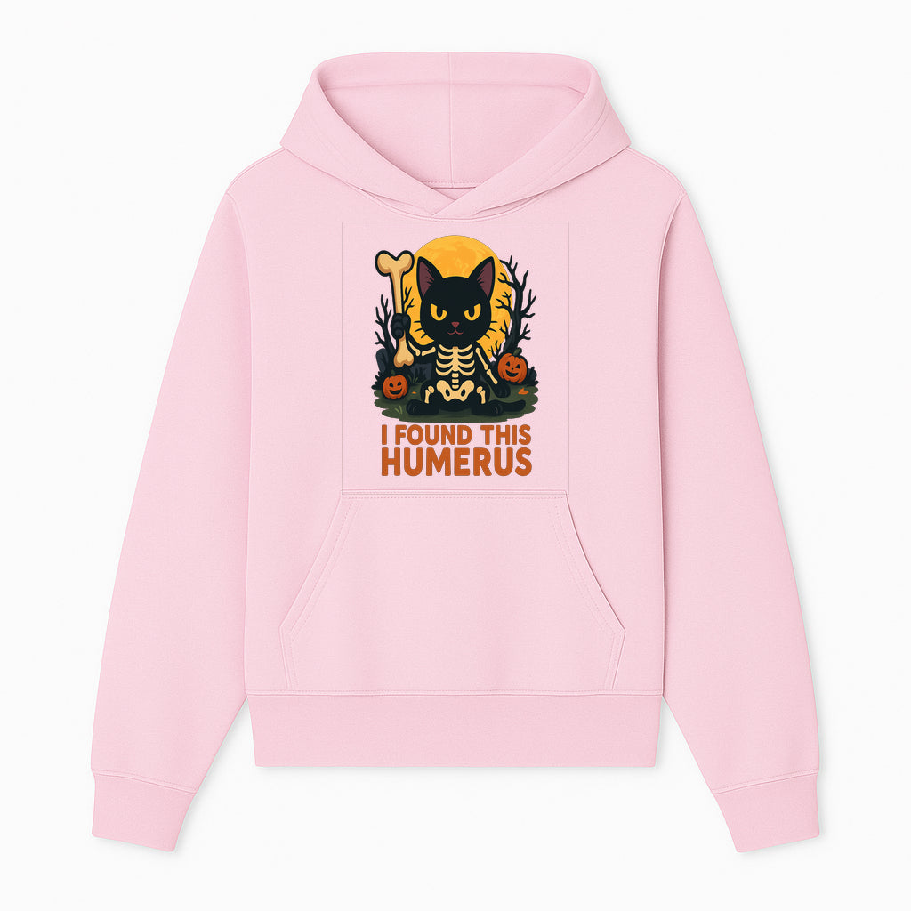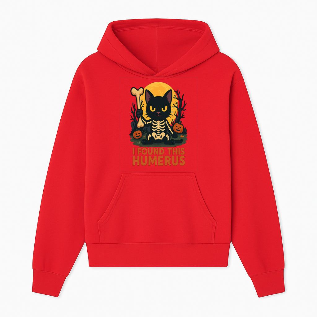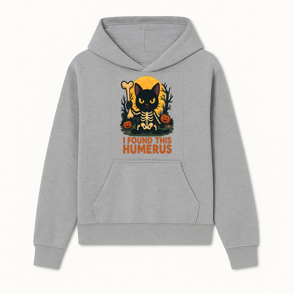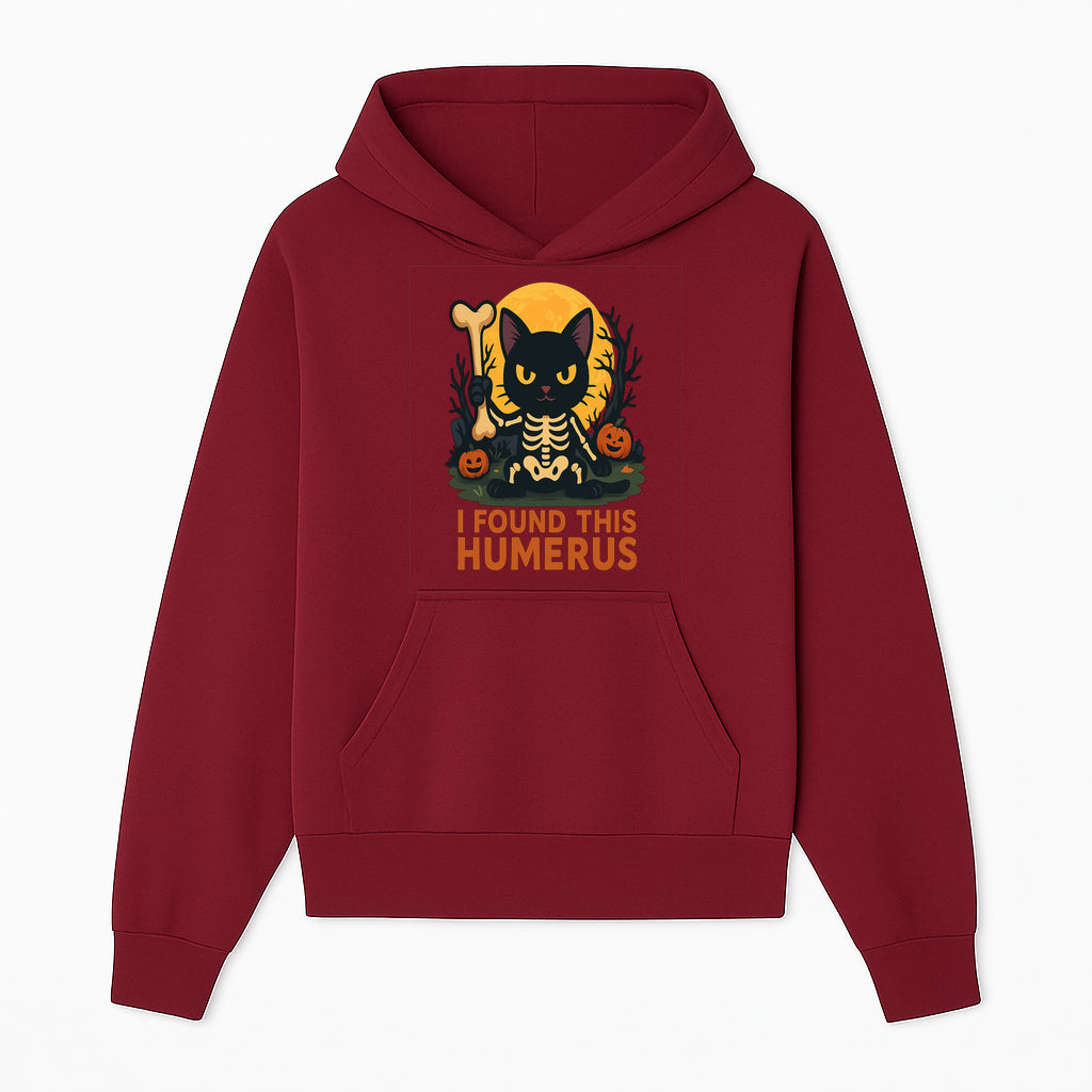 Halloween Black Cat Skeleton with Bone, I Found This Humerus Cute Pumpkin Design, Spooky Decor, Fun Trick or Treat Gift - Hoodie