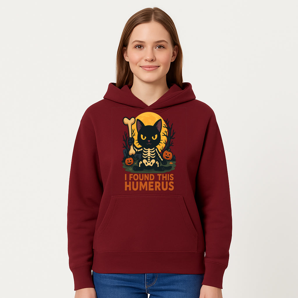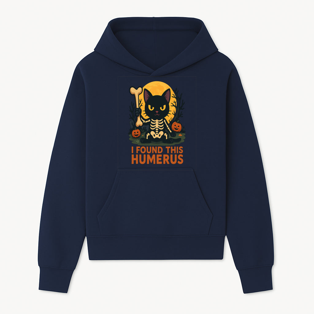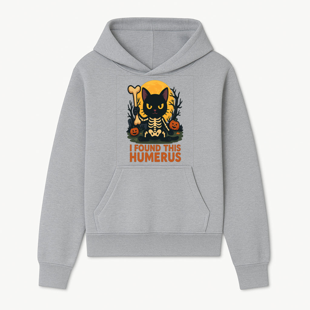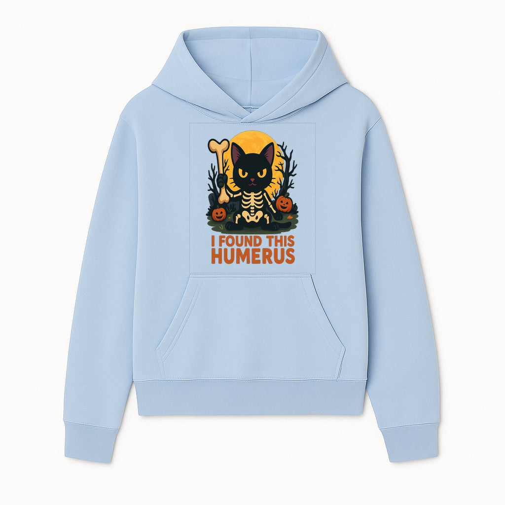 Halloween Black Cat Skeleton with Bone, I Found This Humerus Cute Pumpkin Design, Spooky Decor, Fun Trick or Treat Gift - Hoodie