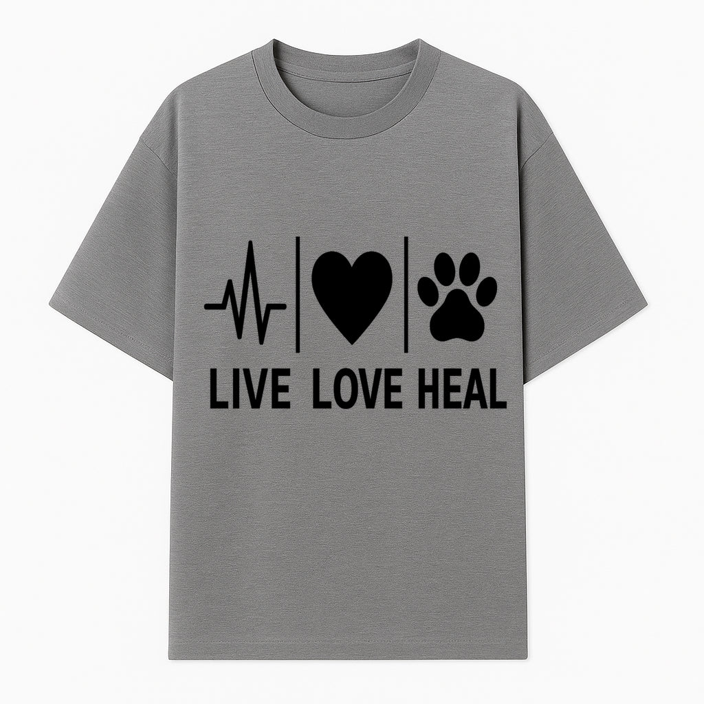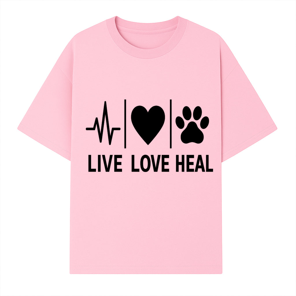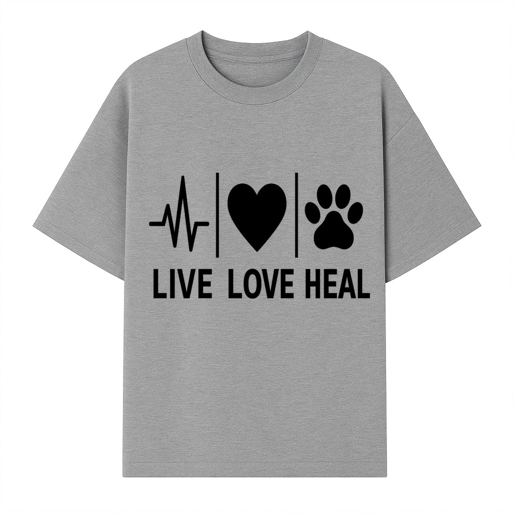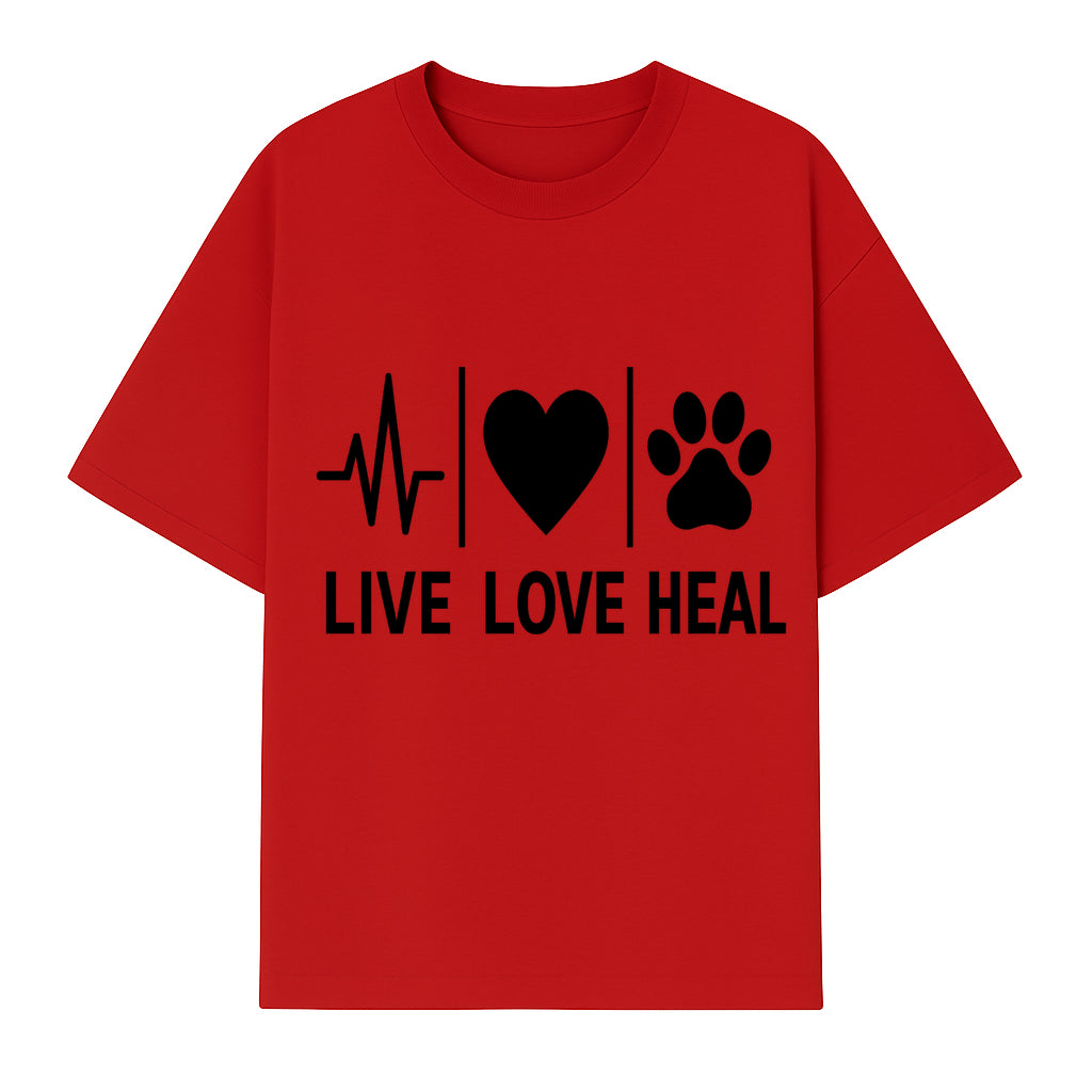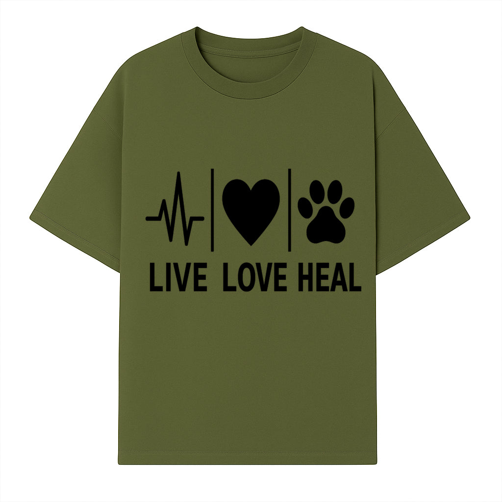 Live Love Heal Wall Art | Heartbeat Love Paw Print Inspirational Decor | Pet Lover Gift | Motivational Home Decoration - T-shirt