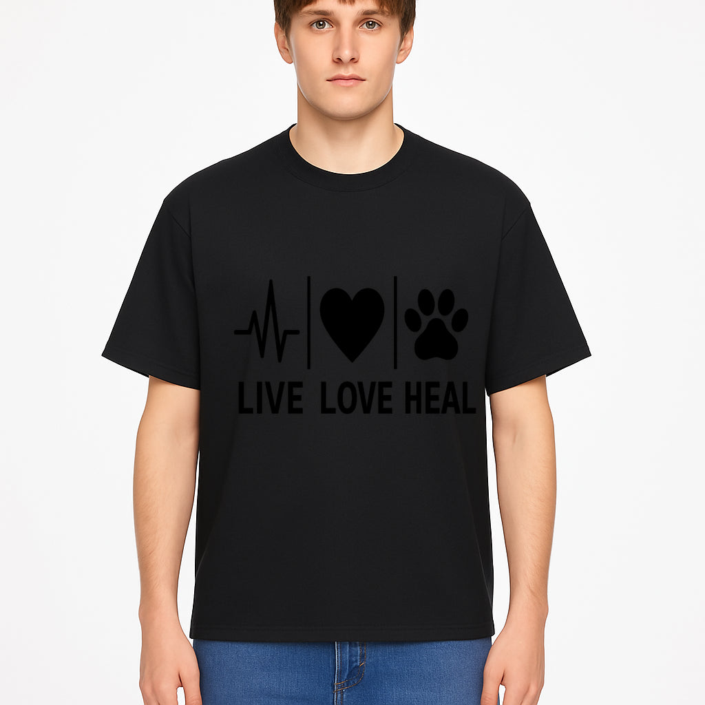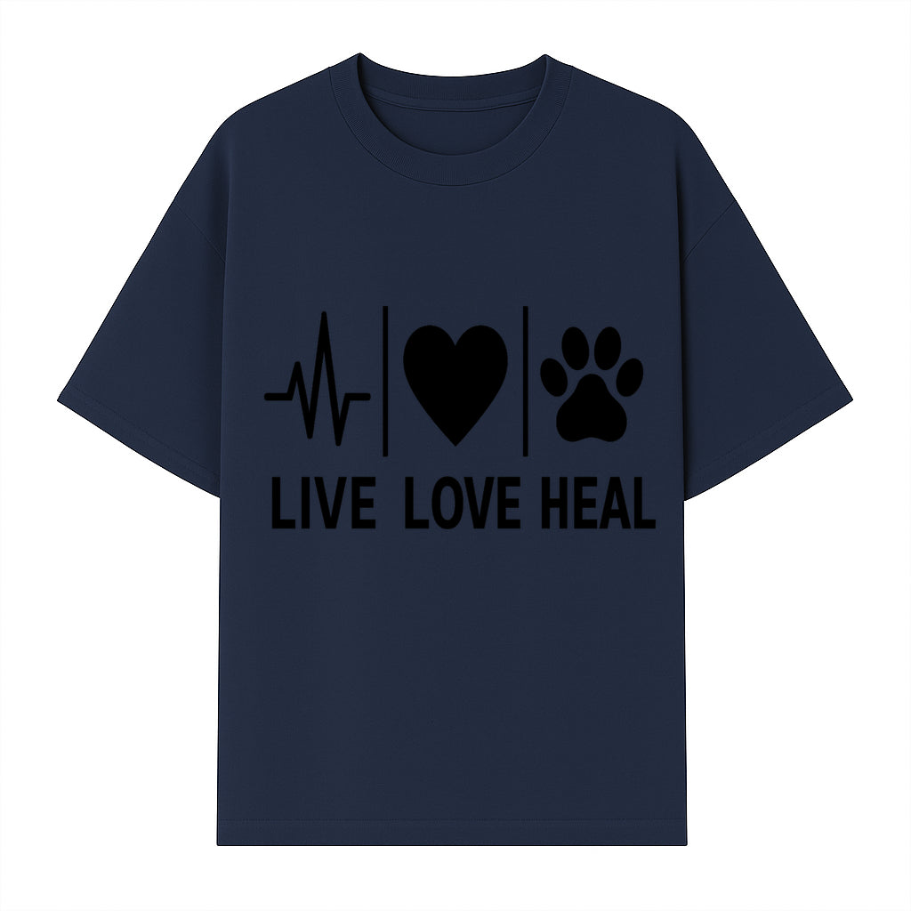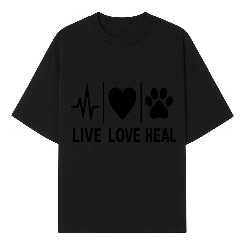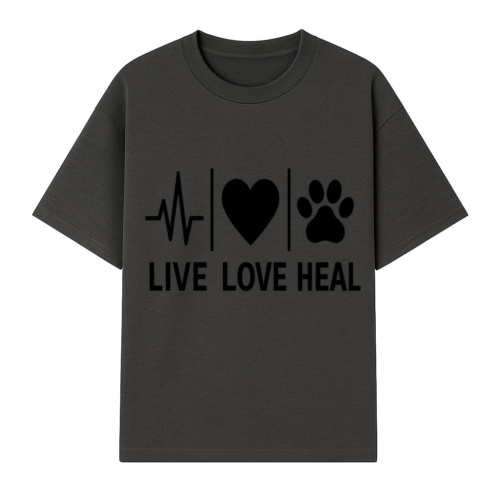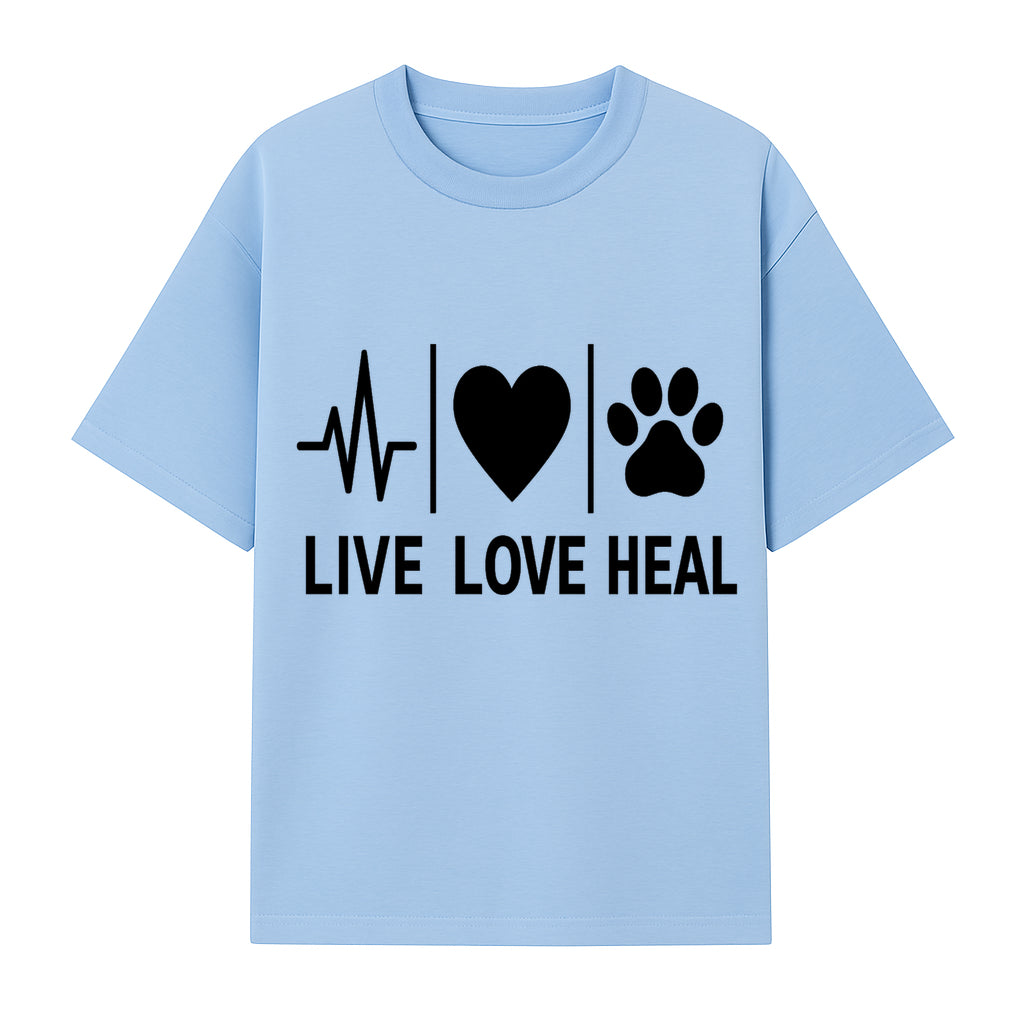 Live Love Heal Wall Art | Heartbeat Love Paw Print Inspirational Decor | Pet Lover Gift | Motivational Home Decoration - T-shirt