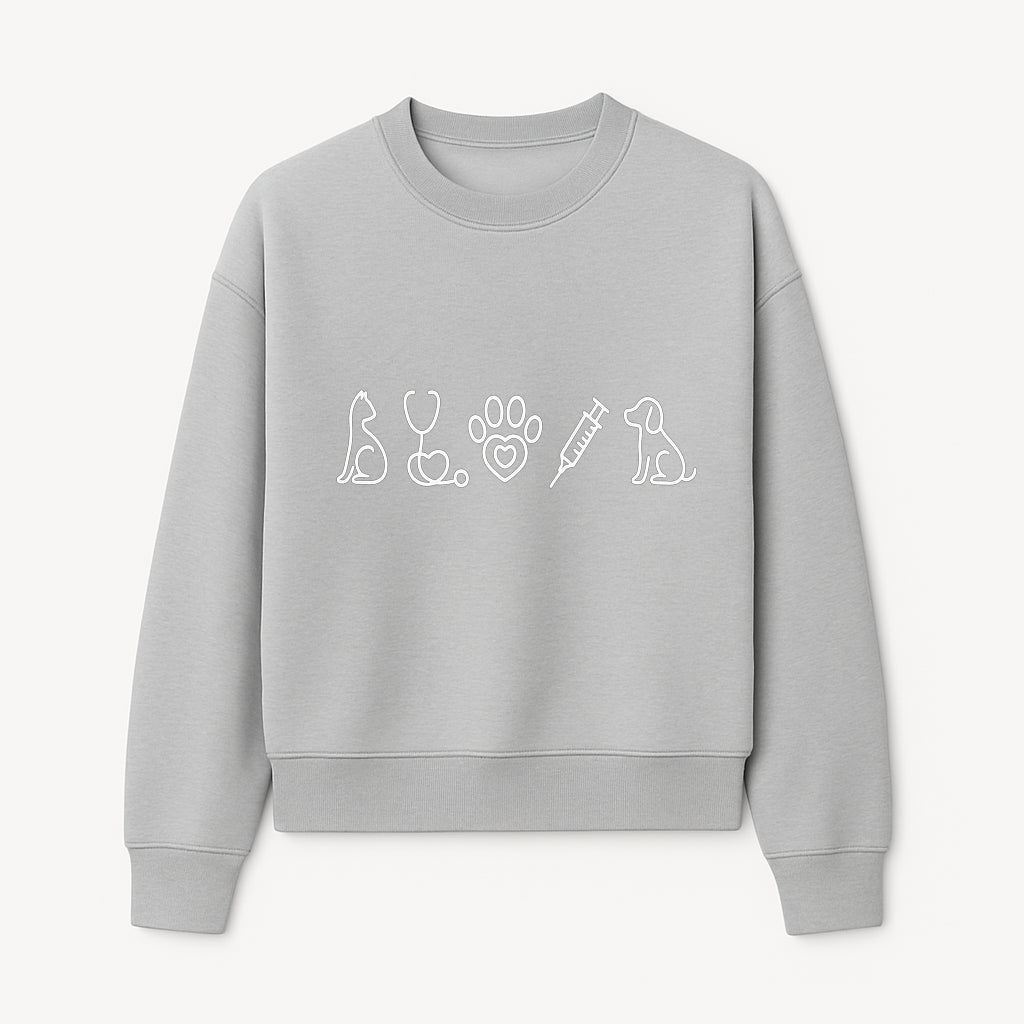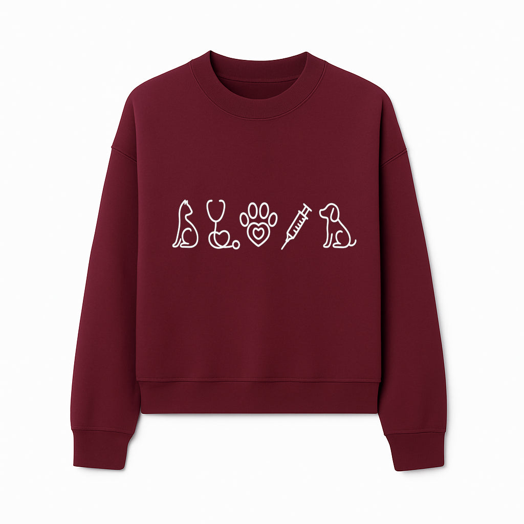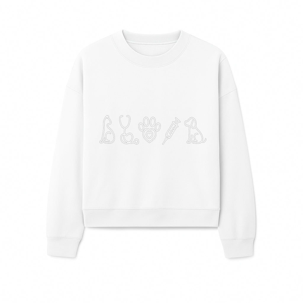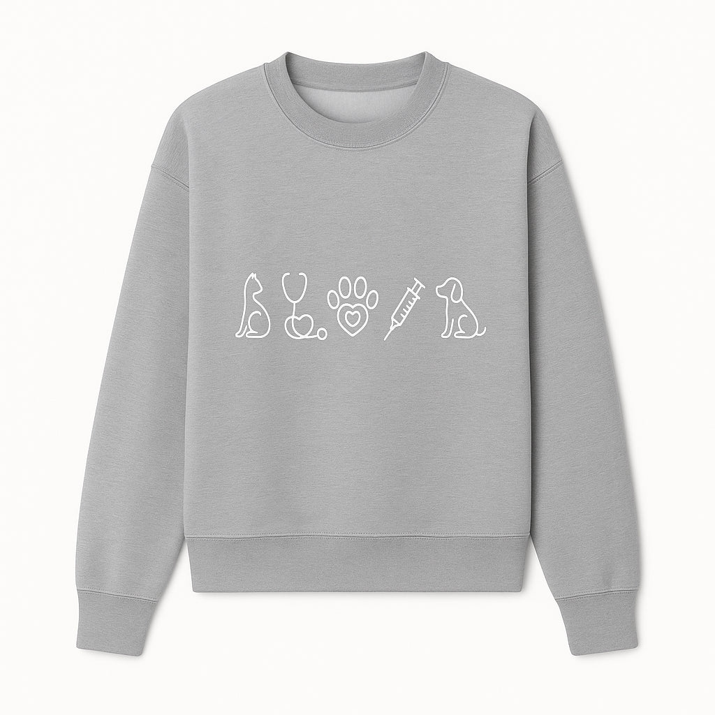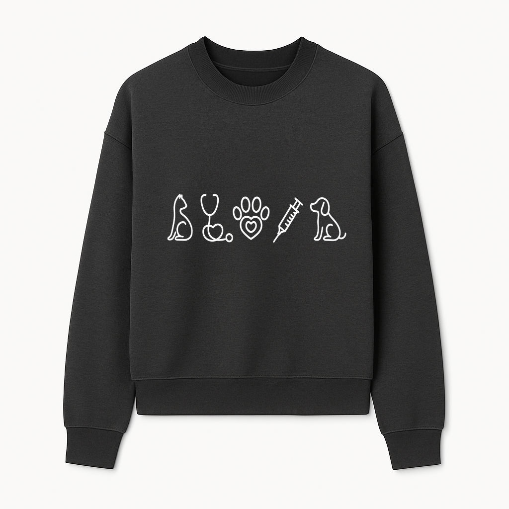 Pet Care Neon Sign, Love for Animals, Veterinary Symbols, Cat Dog Icons, Stethoscope, Paw, Syringe Decor for Veterinary Clinics - Sweatshirt