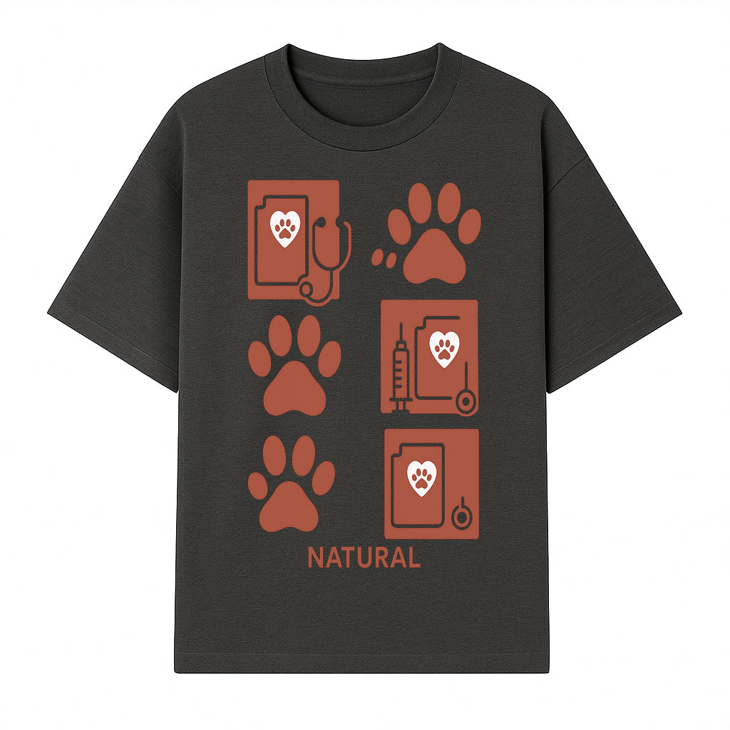 Pet Care Rubber Stamp Set - Paw Print & Vet Icons - Perfect for Dog Lover Crafts and Scrapbooking Projects - Natural Design - T-shirt