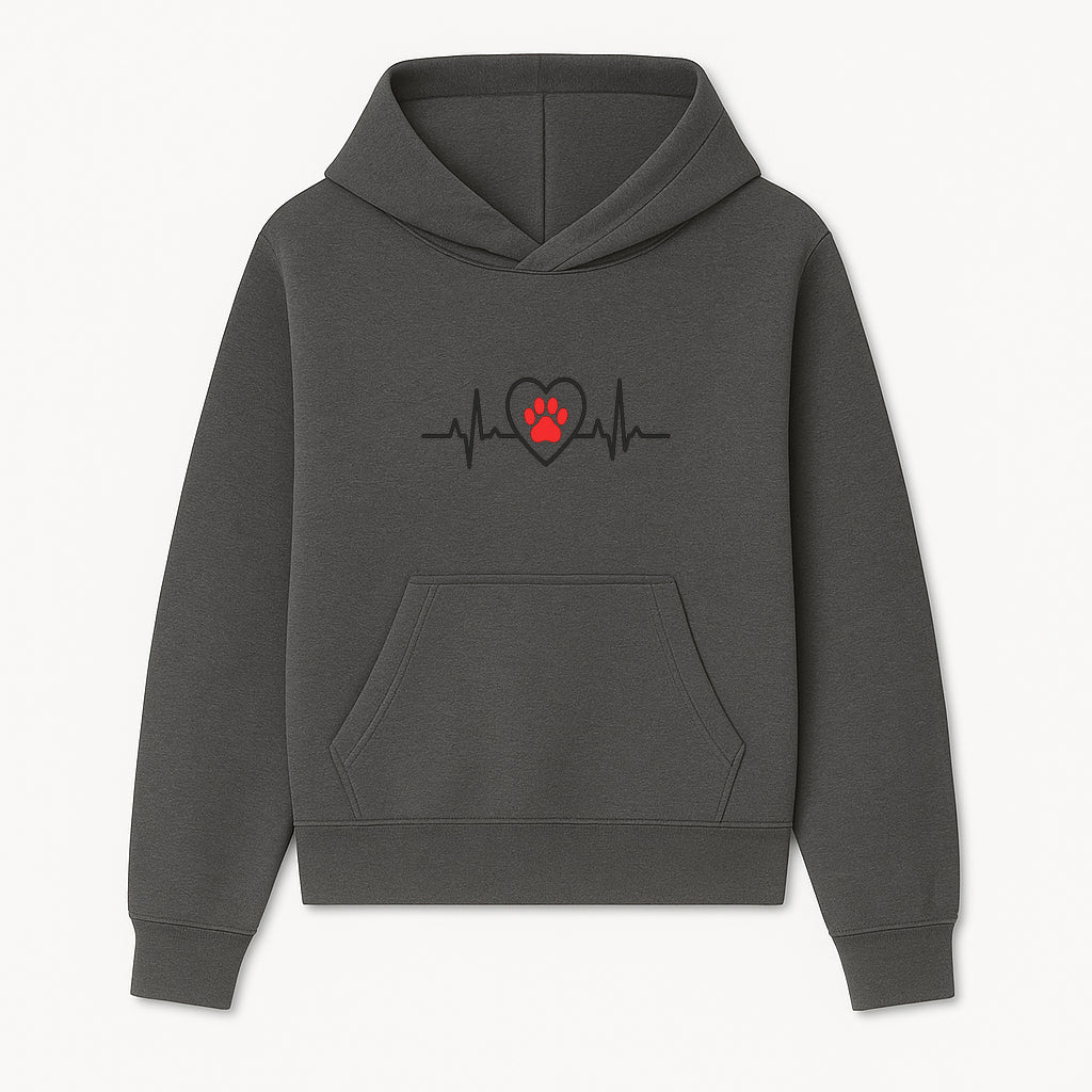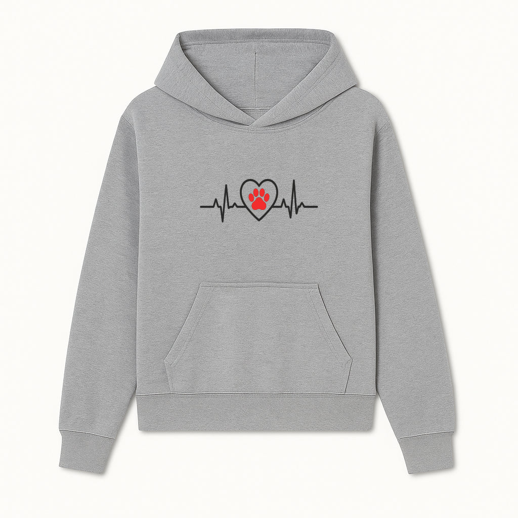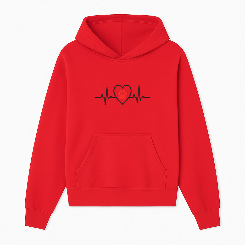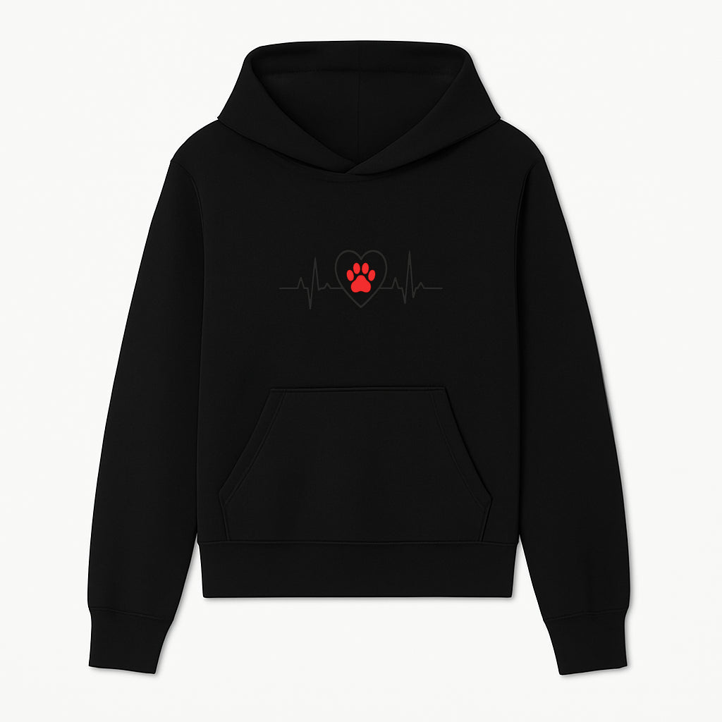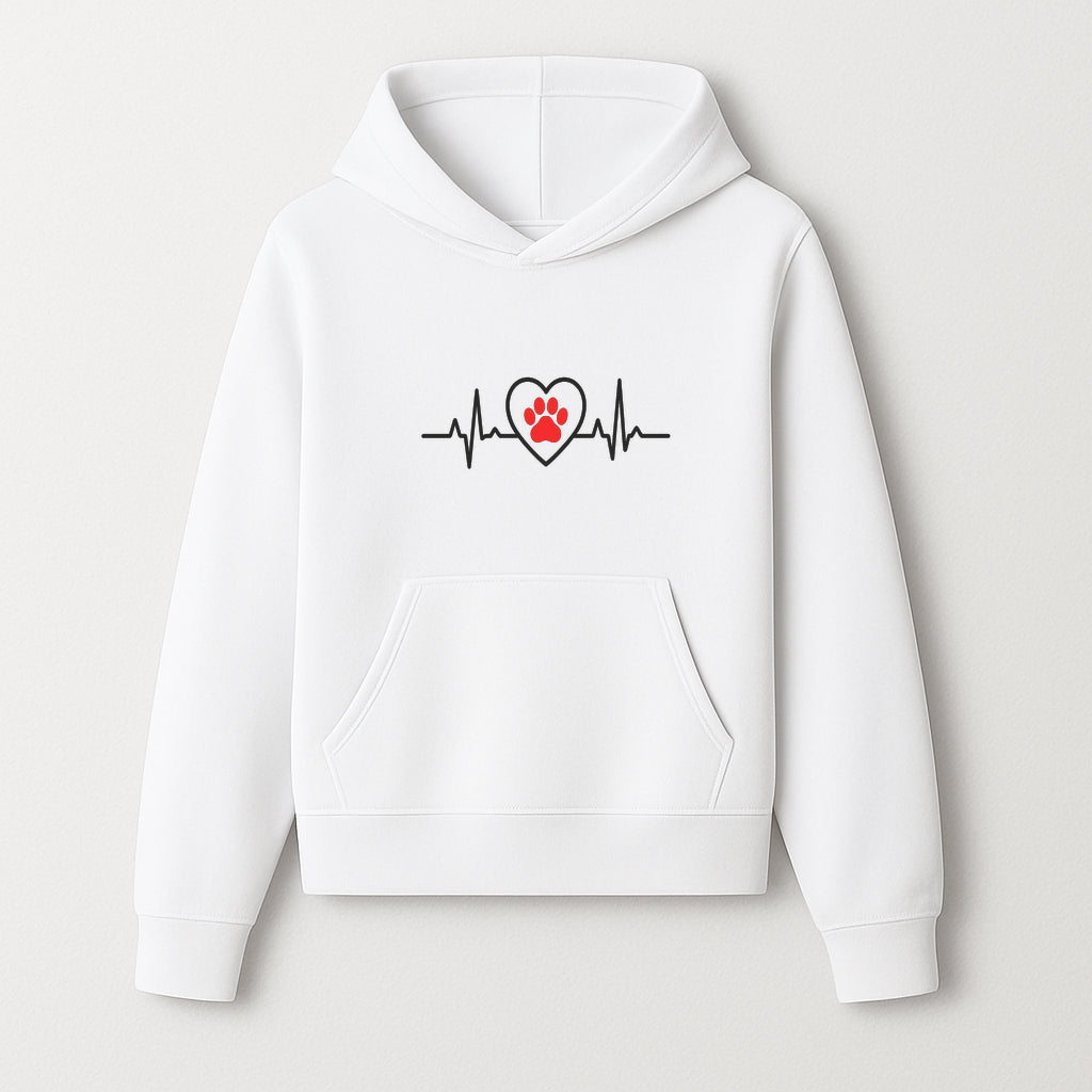 Pet Heartbeat Graphic T-Shirt | Love for Pets | Animal Heartbeat Design | Dog Cat Lover Gift | Cute Pet Apparel | Heart and Paw Print - Hoodie