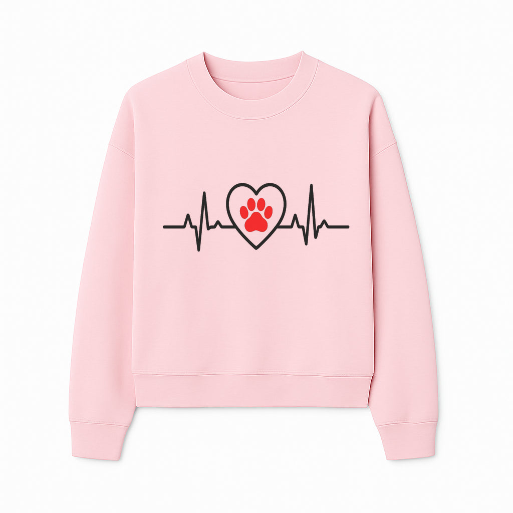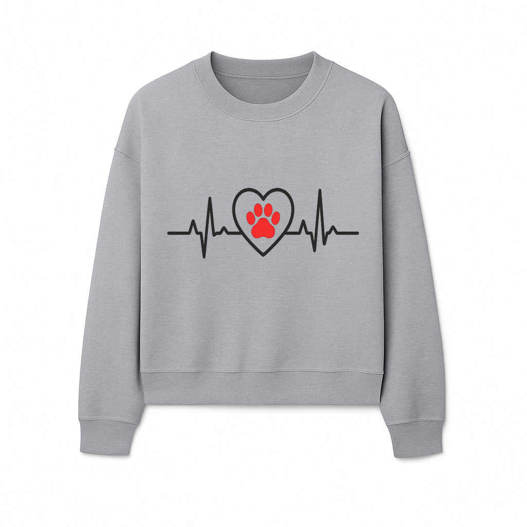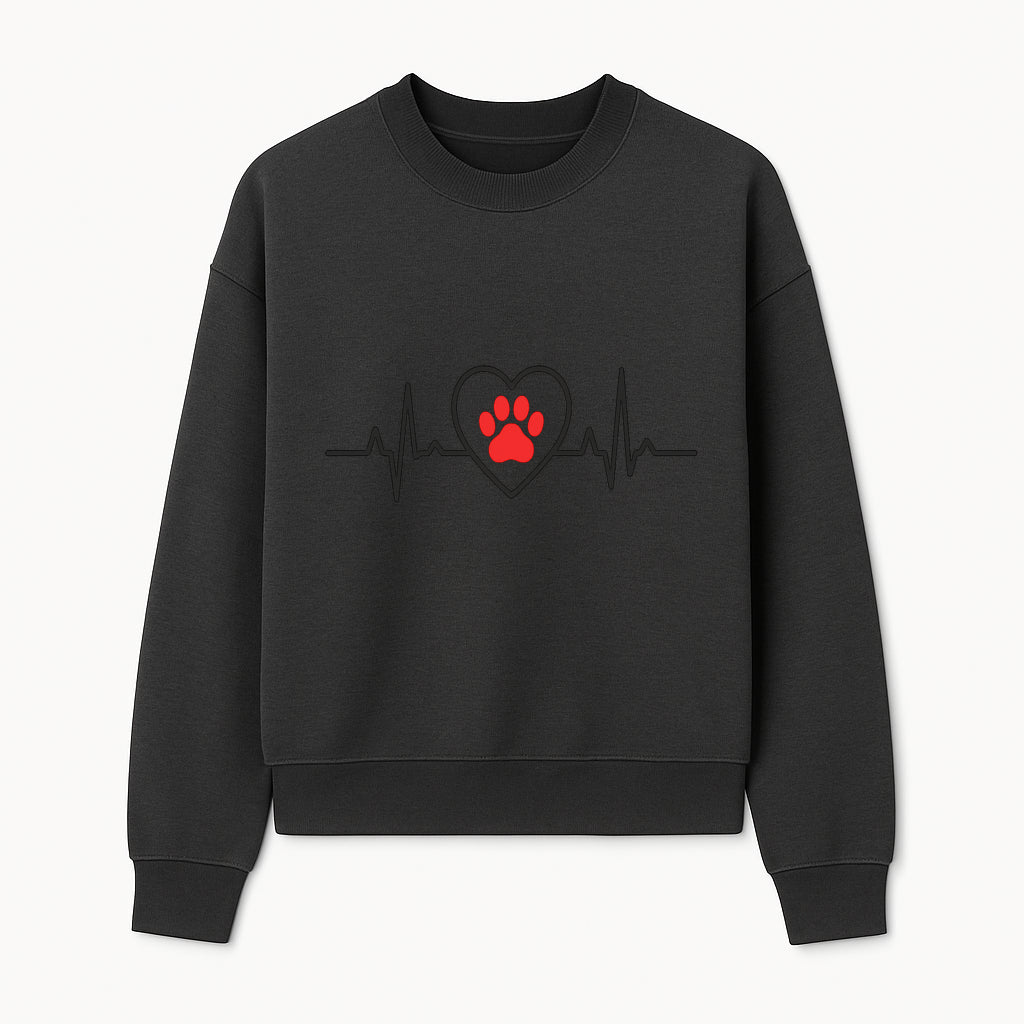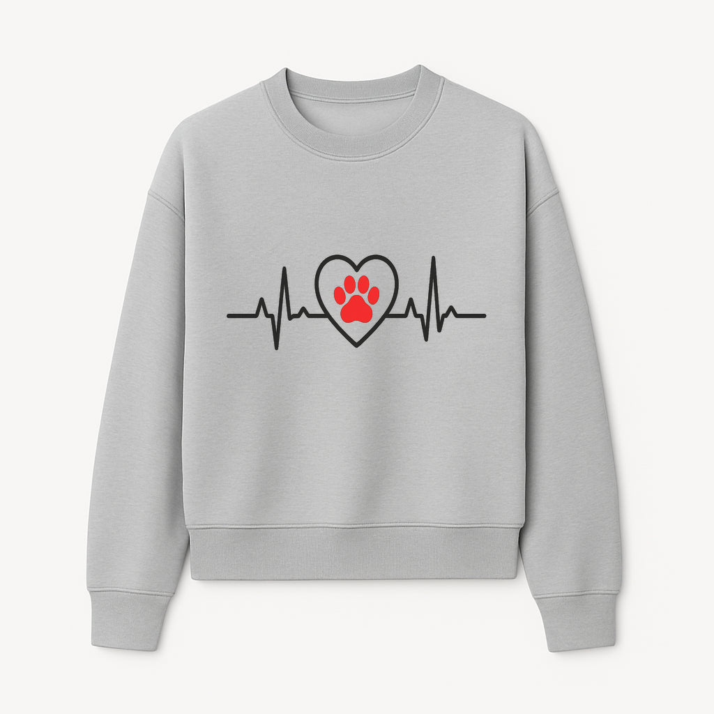 Pet Heartbeat Graphic T-Shirt | Love for Pets | Animal Heartbeat Design | Dog Cat Lover Gift | Cute Pet Apparel | Heart and Paw Print - Sweatshirt