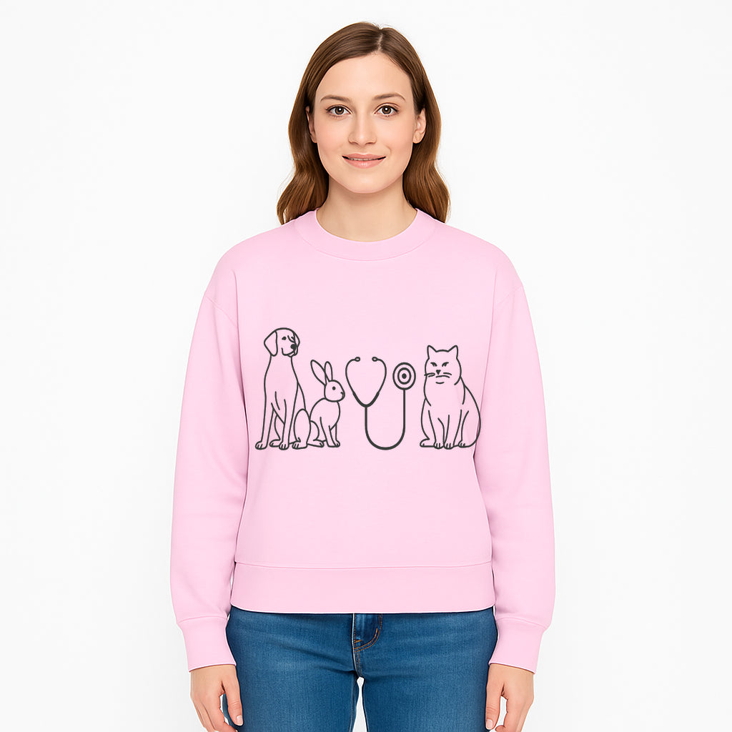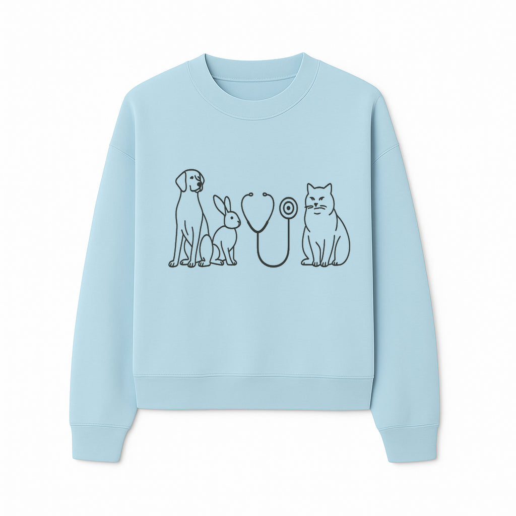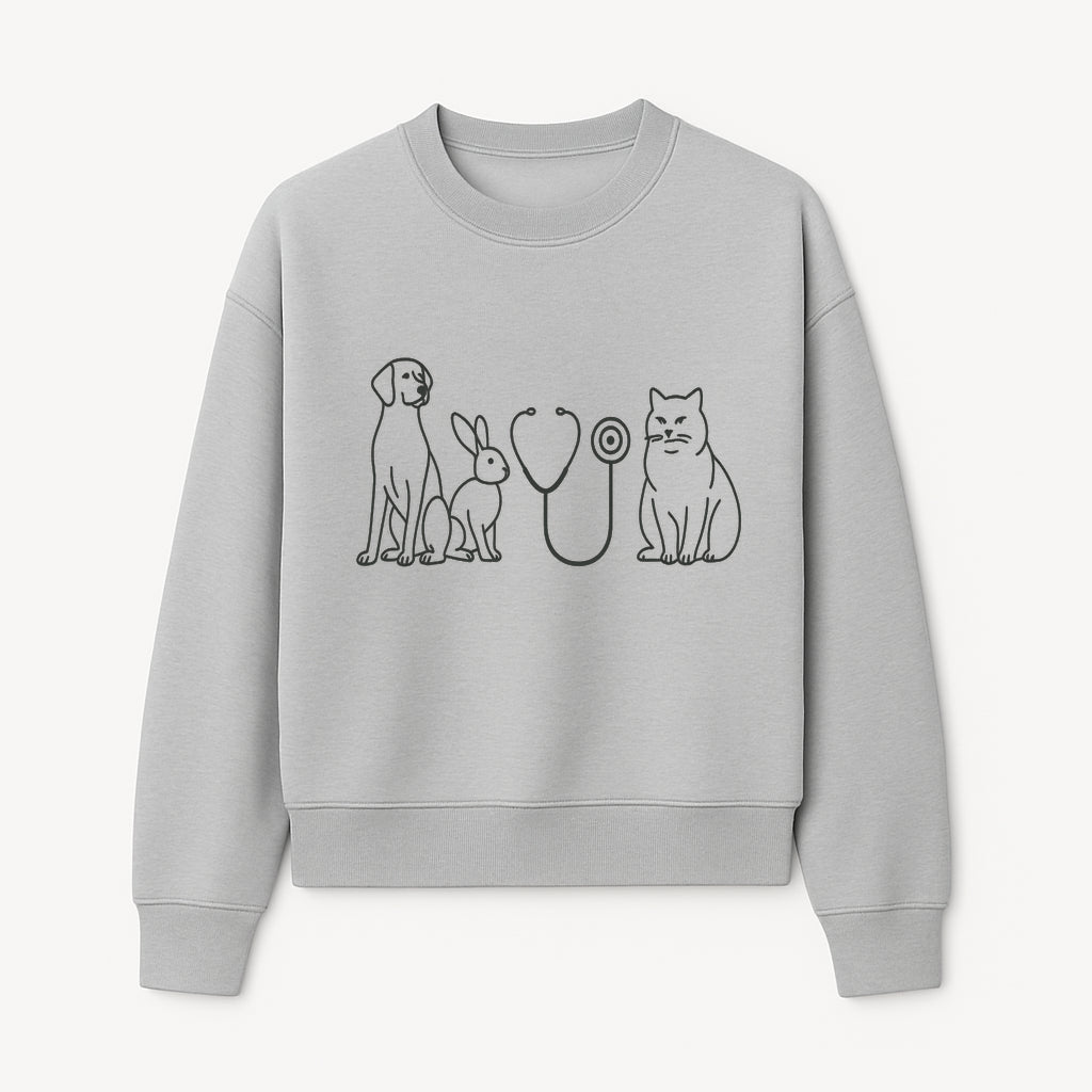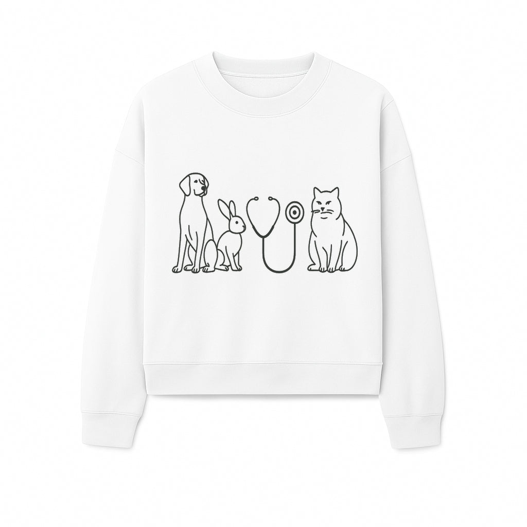 Pet Veterinary Stethoscope Art Print - Dog, Cat, Rabbit Illustration for Animal Lovers, Vet Clinics, Home Decor - Sweatshirt