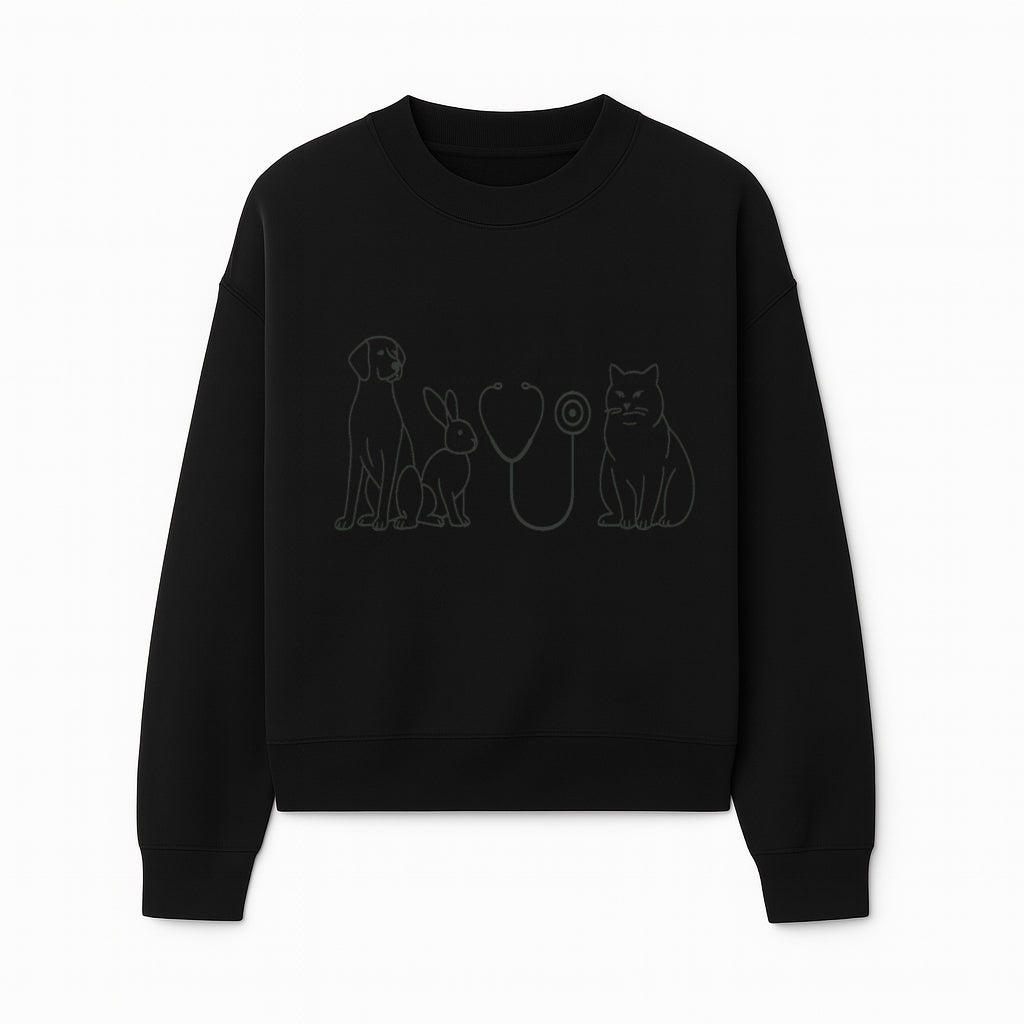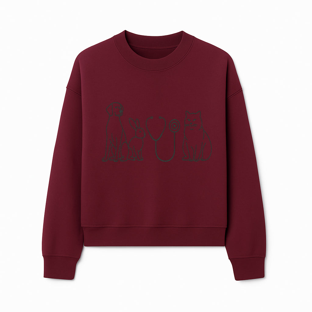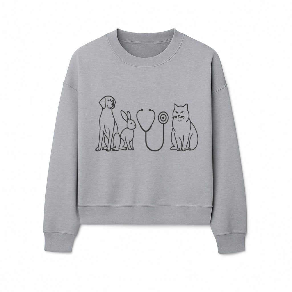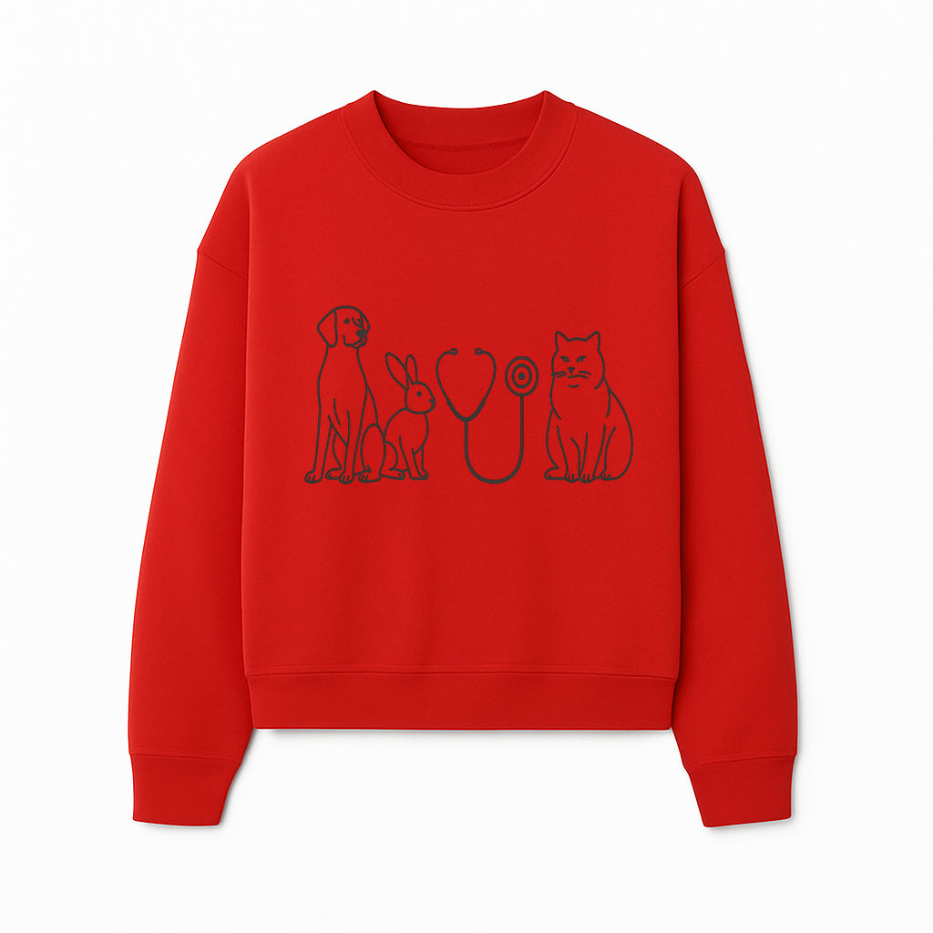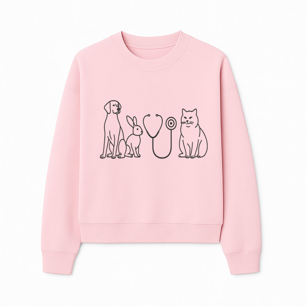 Pet Veterinary Stethoscope Art Print - Dog, Cat, Rabbit Illustration for Animal Lovers, Vet Clinics, Home Decor - Sweatshirt